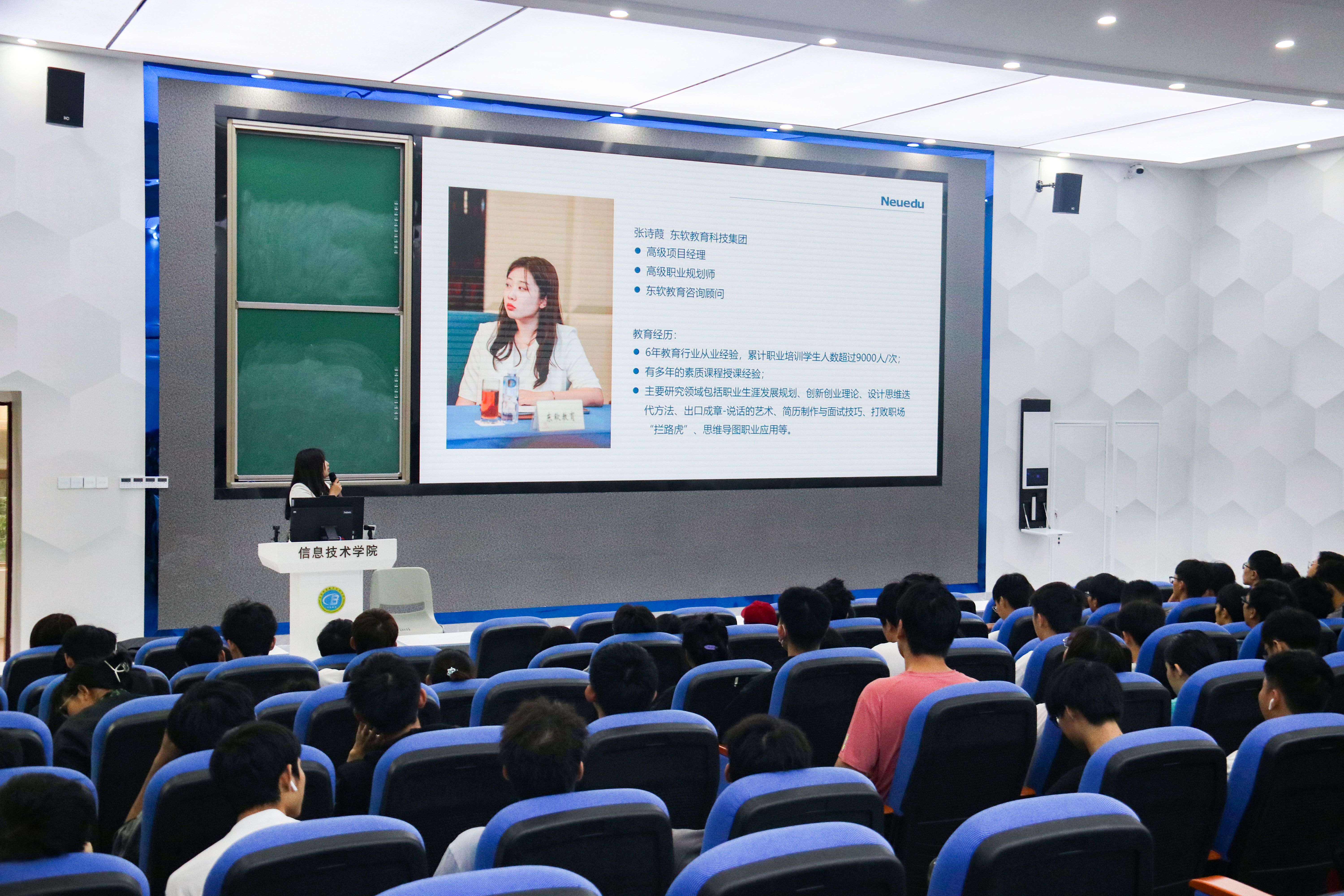 此次宣讲会从东软教育介绍、IT行业介绍和学业规划建议三个方面展开。张经理以东软为切入点展开说明IT行业中的运用到现实的软件、就业区域情况分析以及技术方向分析,让同学们深入了解IT行业的情况。最后,张经理分享了职业生涯规划,举例说明IT行业岗位的职责与要求,激励同学们学好专业知识,紧随时代的大数据发展,让同学们清晰地了解行业发展前景和个人的成长前景。