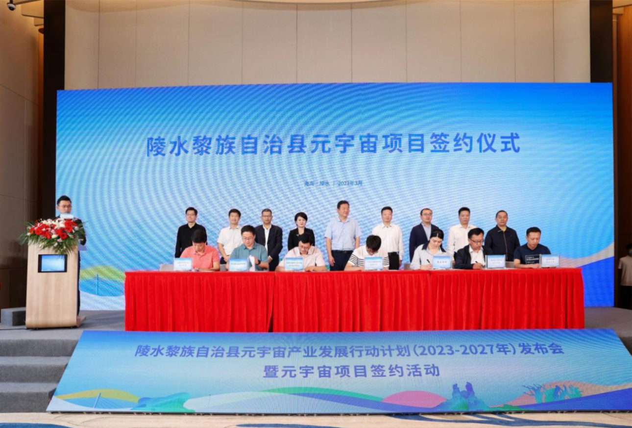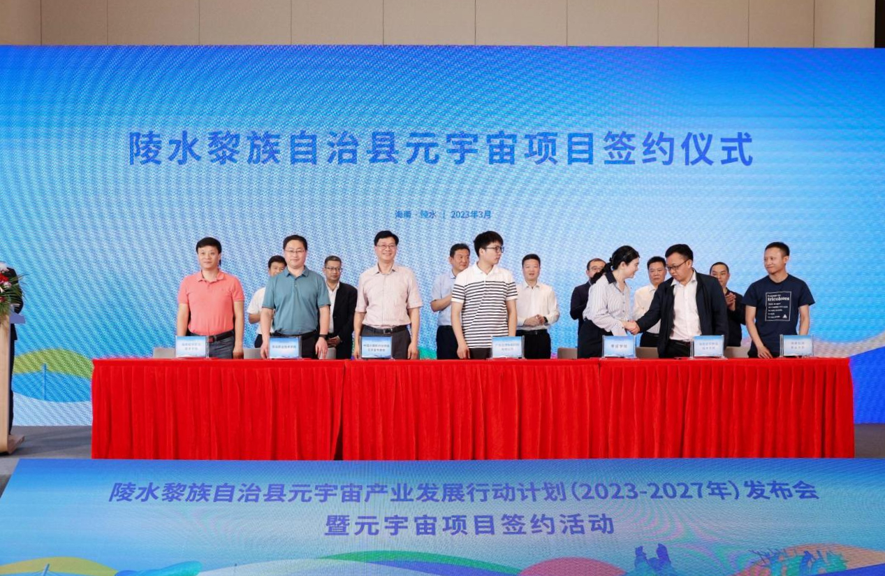 2023年3月22日,陵水黎族自治县元宇宙产业发展行动计划(2023-2027年)发布会暨元宇宙项目签约活动在陵水黎安凯悦酒店举行,多个重点项目负责人集中签约,元宇宙专委会执行会长罗军、太阳网集团tcy8722副院长单继周及其他有关领导出席并见证签约仪式。