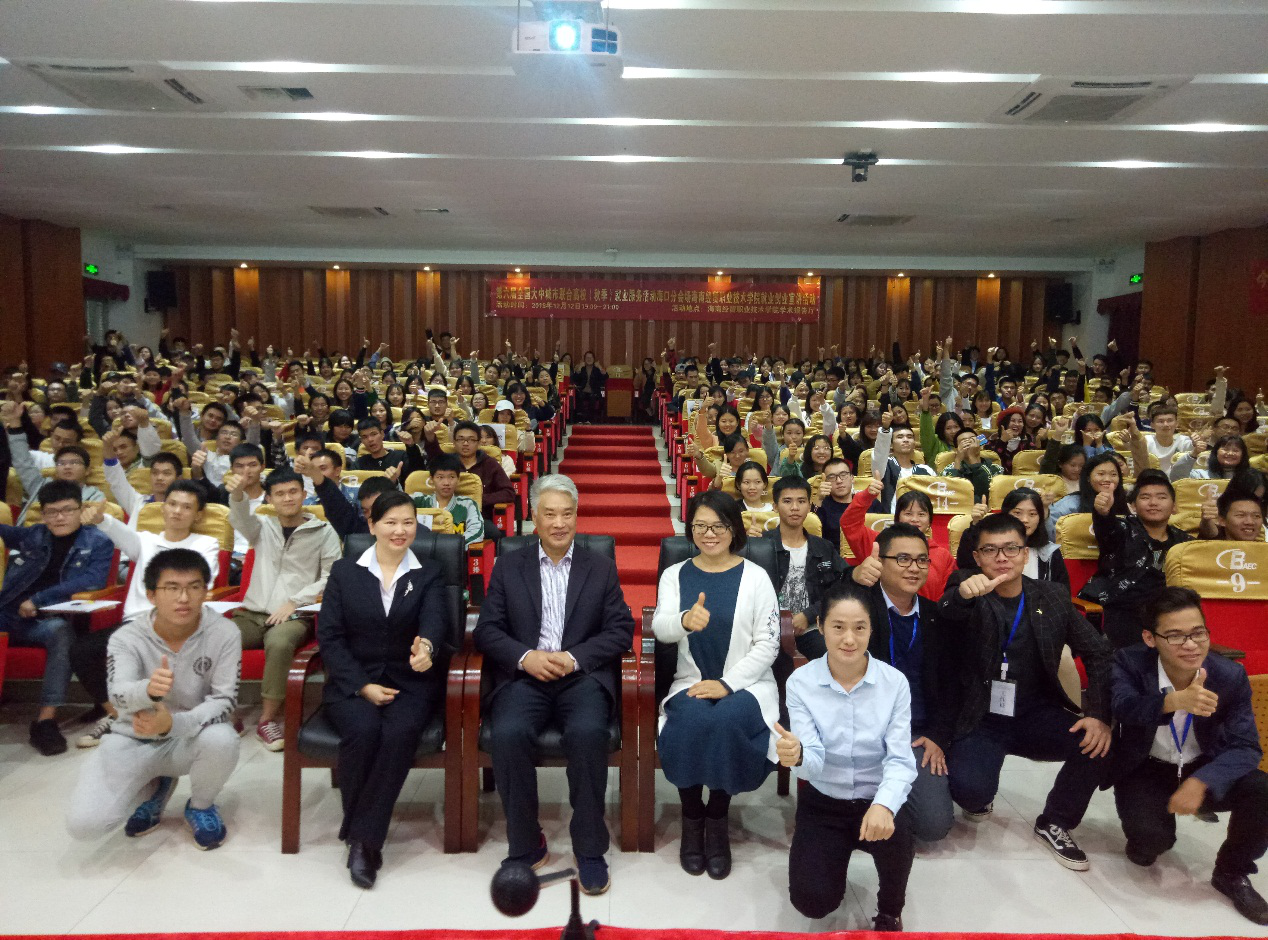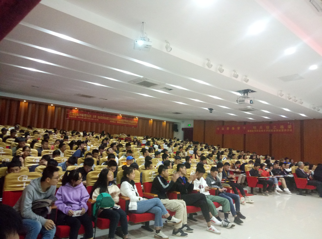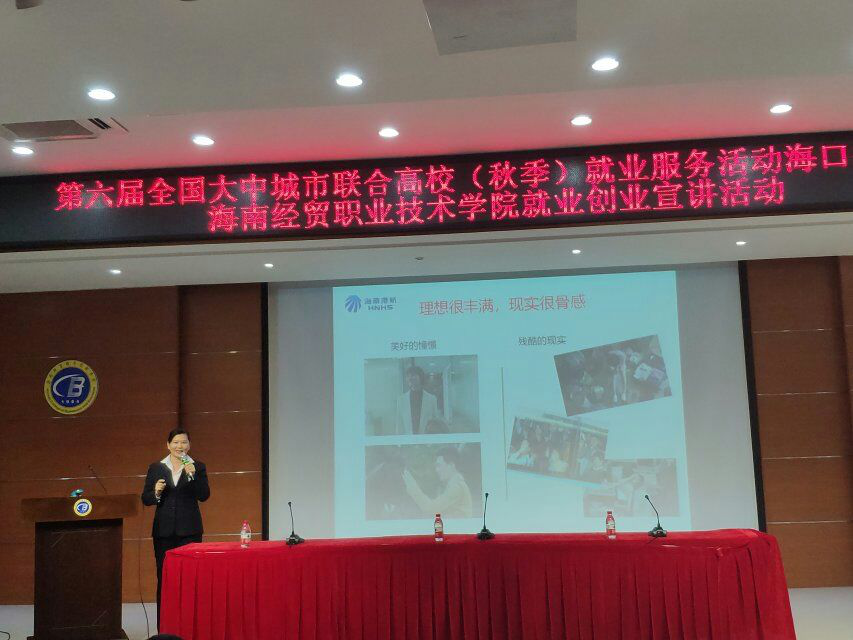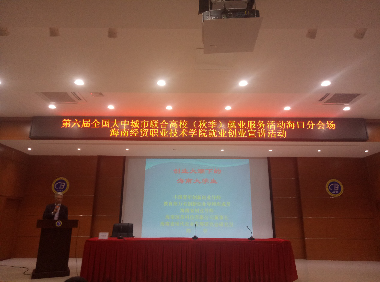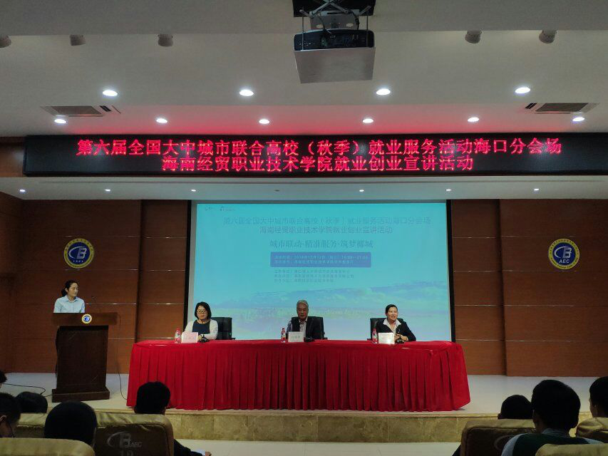 12月12日(青年媒体中心报道 张美芳)讯,第六届全国大中城市联合高校就业创业宣讲活动在海南经贸职业技术学院学术交流报告厅晚上七点举行,参加人员有梁云云老师、向银林导师、刘安平导师还有各别班级的大一大二同学们,以及在场的工作人员。