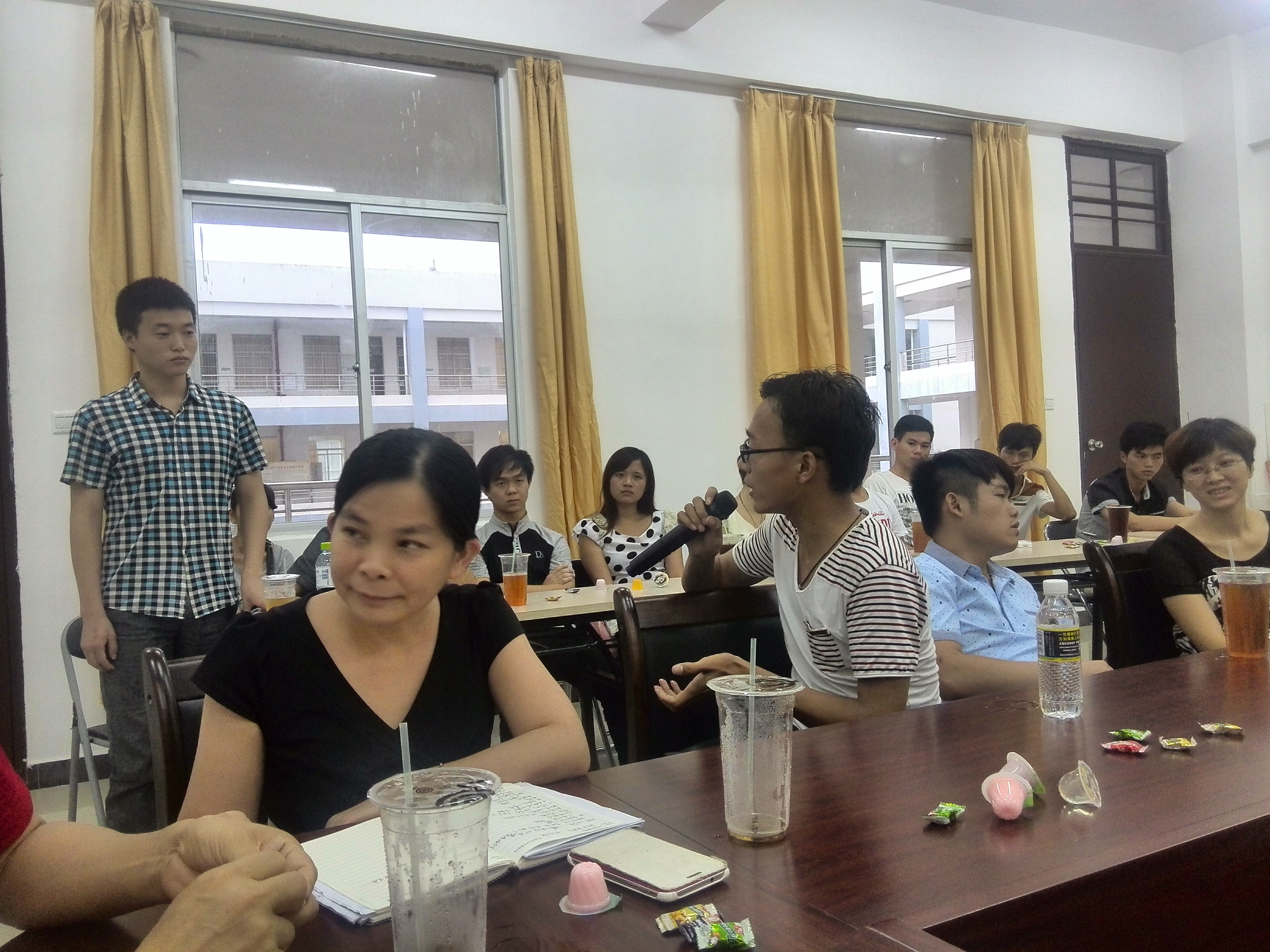 座谈会上,11级陈桃、钱子俊、管政同学作为毕业生代表发言,他们都回忆了在校学习生活的点点滴滴,感悟了在母校的收获与成长,同时也感谢母校的悉心培养和教育,并围绕学校建设、校园活动、学习生活、课程设置、实习就业等,提出了许多宝贵的意见和建议。会议进行到中途,12、13级的同学纷纷借此座谈会向即将离开学校的各个专业的优秀毕业生代表们提出自己心里的疑问,如:“我读这个专业以后能不能找到专业对口的工作”,“我读这个专业到底出社会该如何规划自己的职业生涯”,“我该如何创业”等等诸多问题,11级优秀毕业生代表钱子俊同学、管政同学很热情洋溢的回答了这些学弟学妹们,最后,毕业生代表们纷纷祝愿母校能够发展得越来越好,并表示一定会在今后的工作中努力为母校争光添彩。