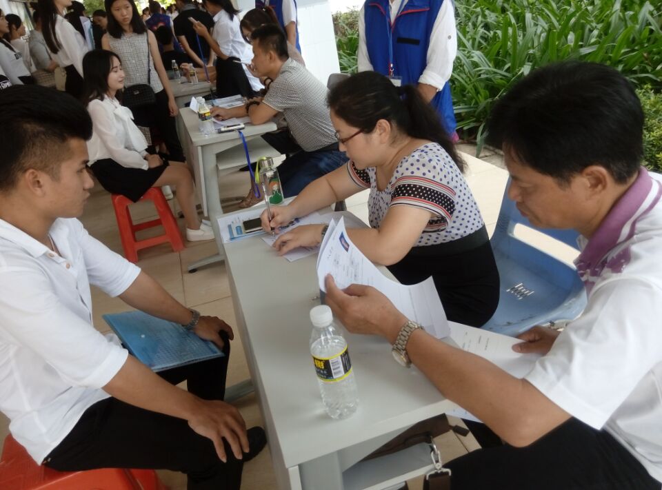 上午9时,2016届海南省毕业生供需洽谈会在主持人的开场白下拉开了帷幕。出席此次洽谈会开幕式的人员主要有学院领导、企业代表、我院大一学生,逐次由徐畅副书记、企业代表、毕业生代表分别上台致辞。开幕式在大家的热烈掌声中闭幕。