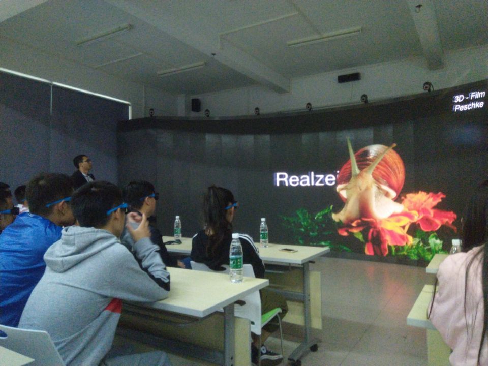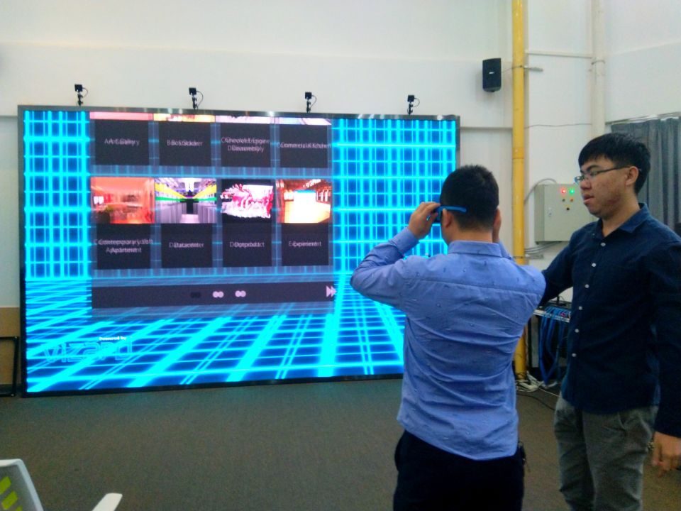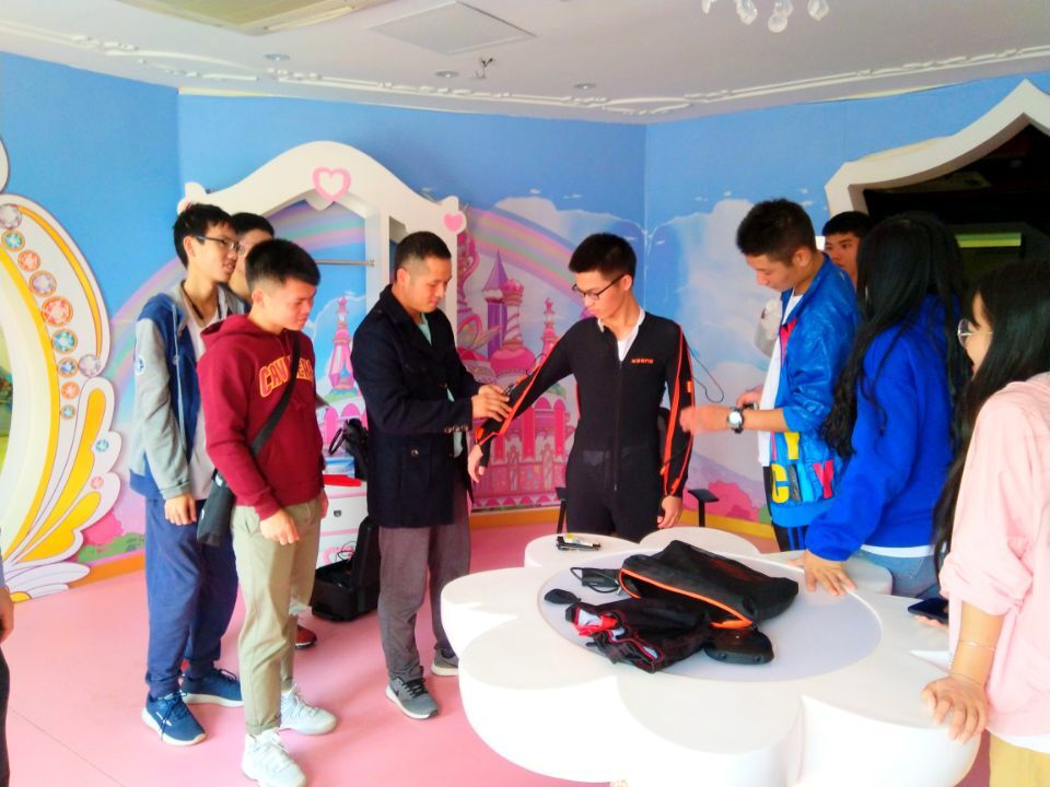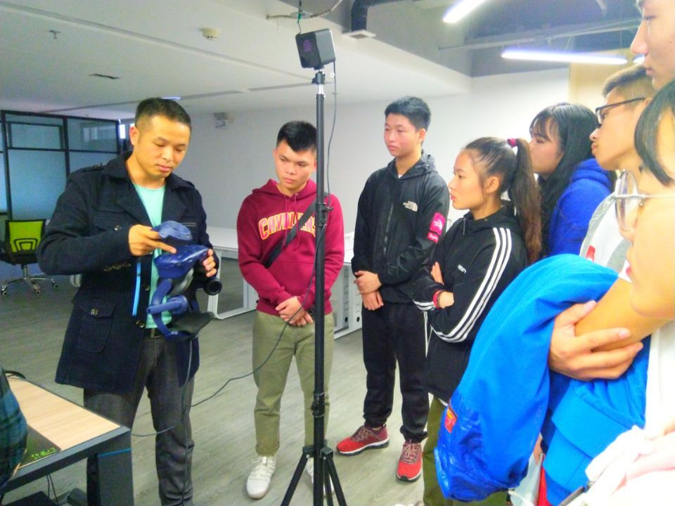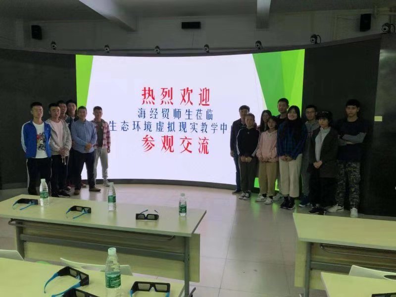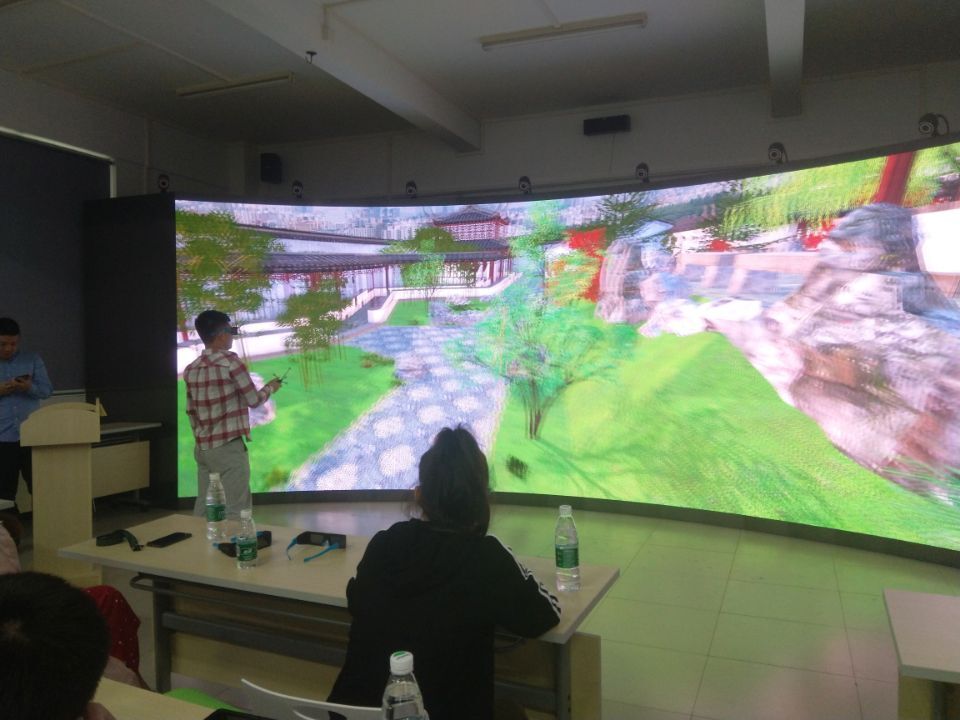 11月24日早我们又来到了广东轻工职业技术学院参观学习,经过对校园的简单的参观后,我们来到了由上海曼恒数字技术股份有限公司和广东轻工职业化技术学院合作建设的生态环境虚拟现实教学中心。公司的技术人员给我们上了一堂生动的VR专业课,通过高清的多面VR虚拟现实交互屏为我们展示虚拟现实技术的效果和多方面用途,受益良多。