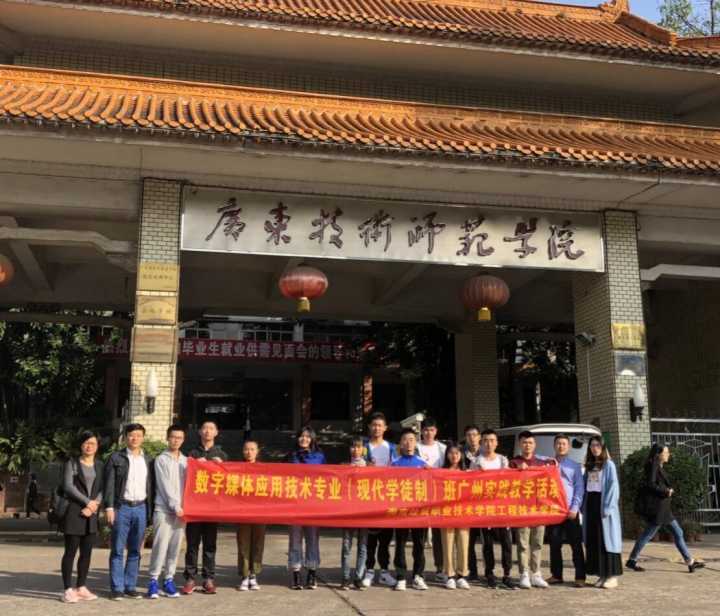 本院11月26日讯(工程技术学院报道)11月23日,由我院发起的数字媒体应用技术专业(现代学徒制)班广州实践教学活动在我校正门门口正式拉开帷幕,此次活动由我院副院长单继周老师带队,参与人员有我院党总支副书记陈亚芳老师、辅导员郭蓉佳老师、班主任康东老师以及数字媒体学徒班叶利恒等12名同学。