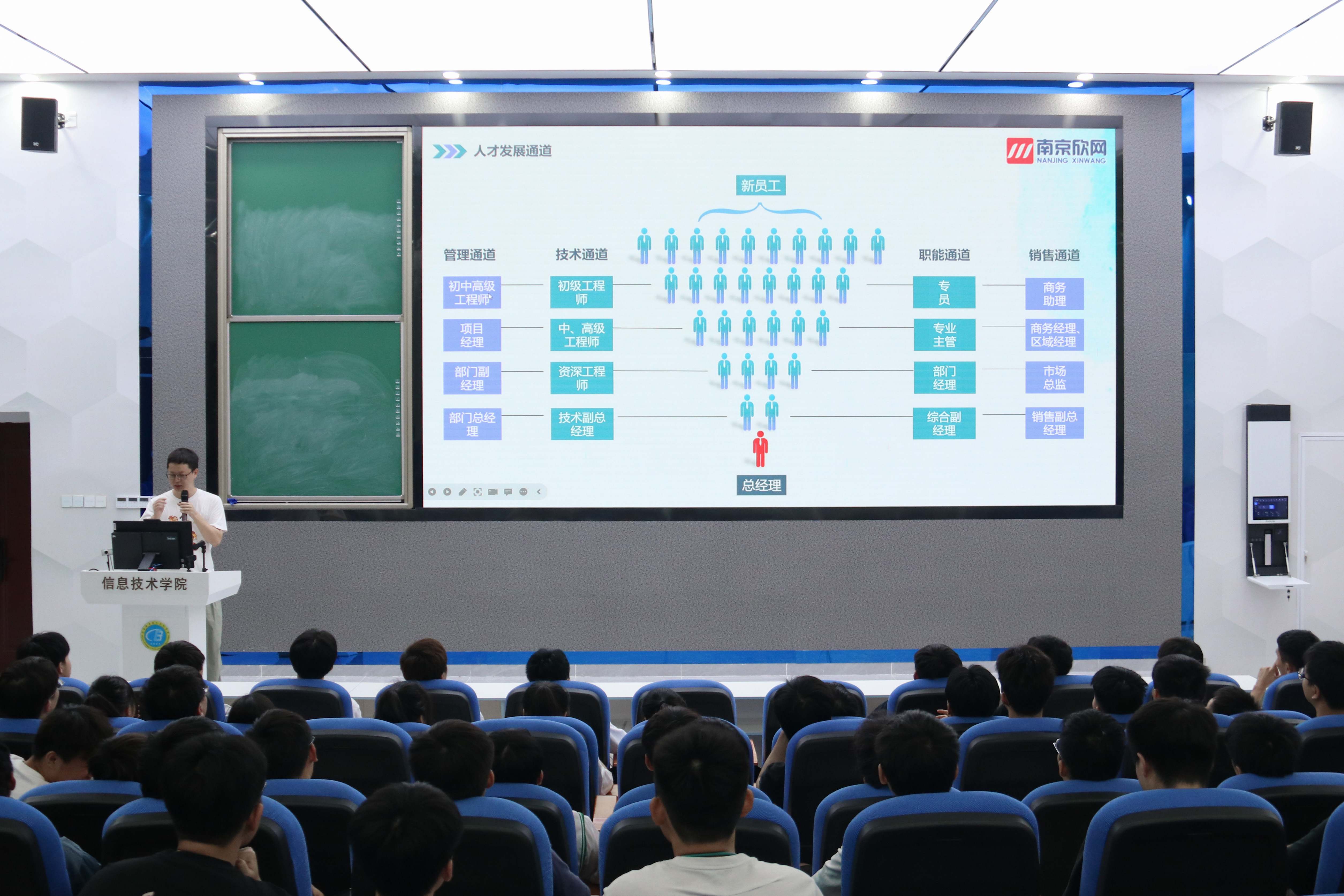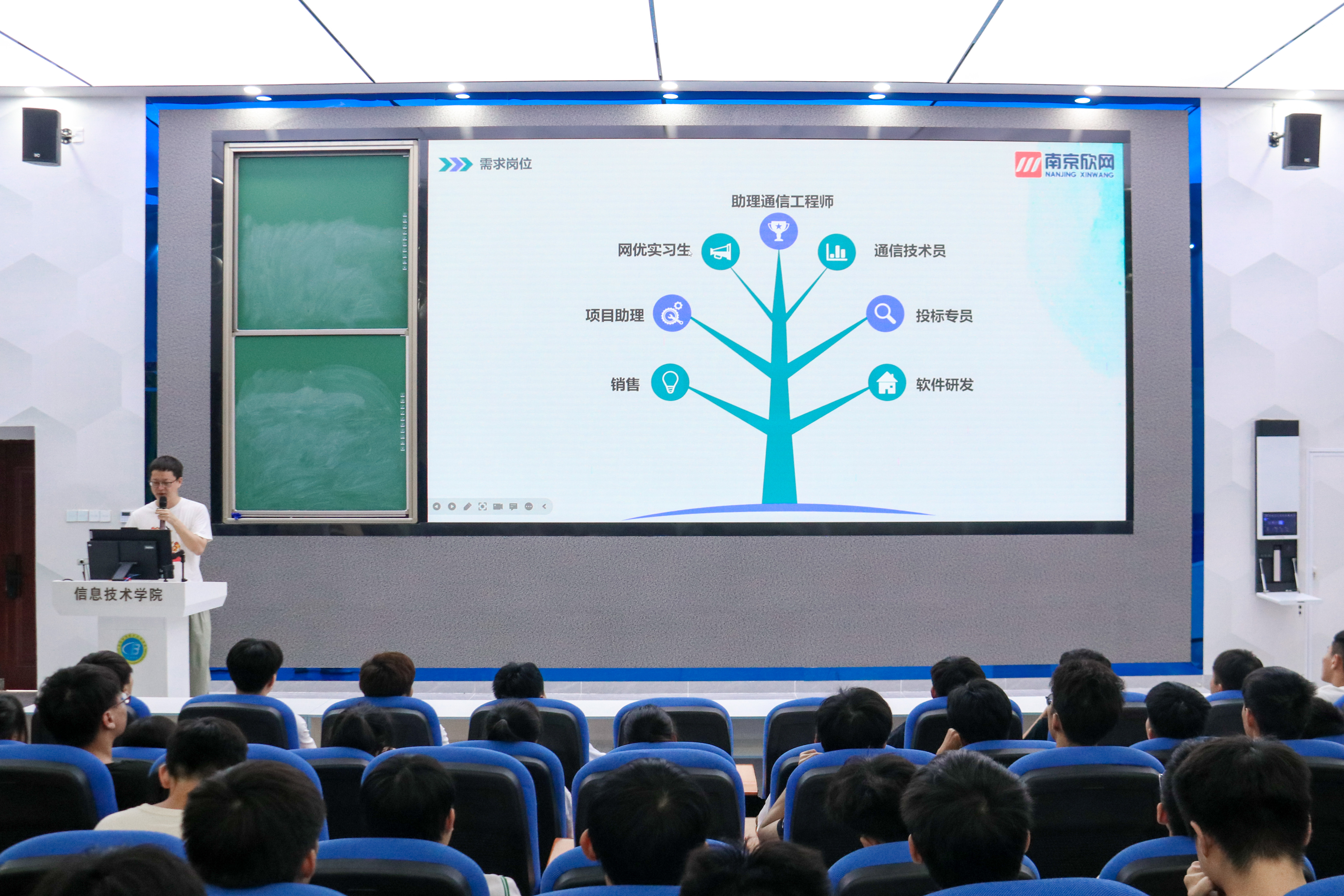 为搭建供需平台,提供更加优质的就业资源,促进毕业生积极就业,实现毕业生与用人单位双向选择、互利共赢的目标,6月6日上午10点,我院邀请南京欣网通信科技股份有限公司在4-215举办了专场招聘宣讲会。