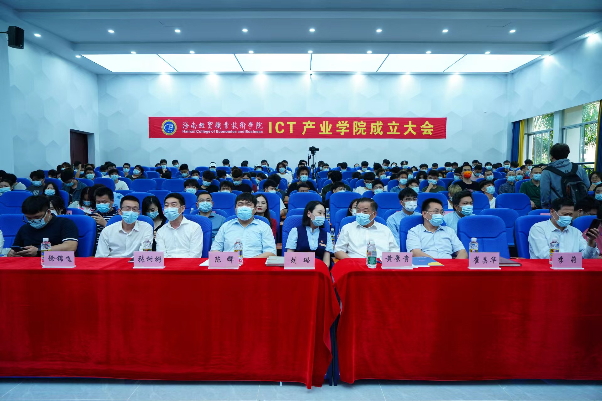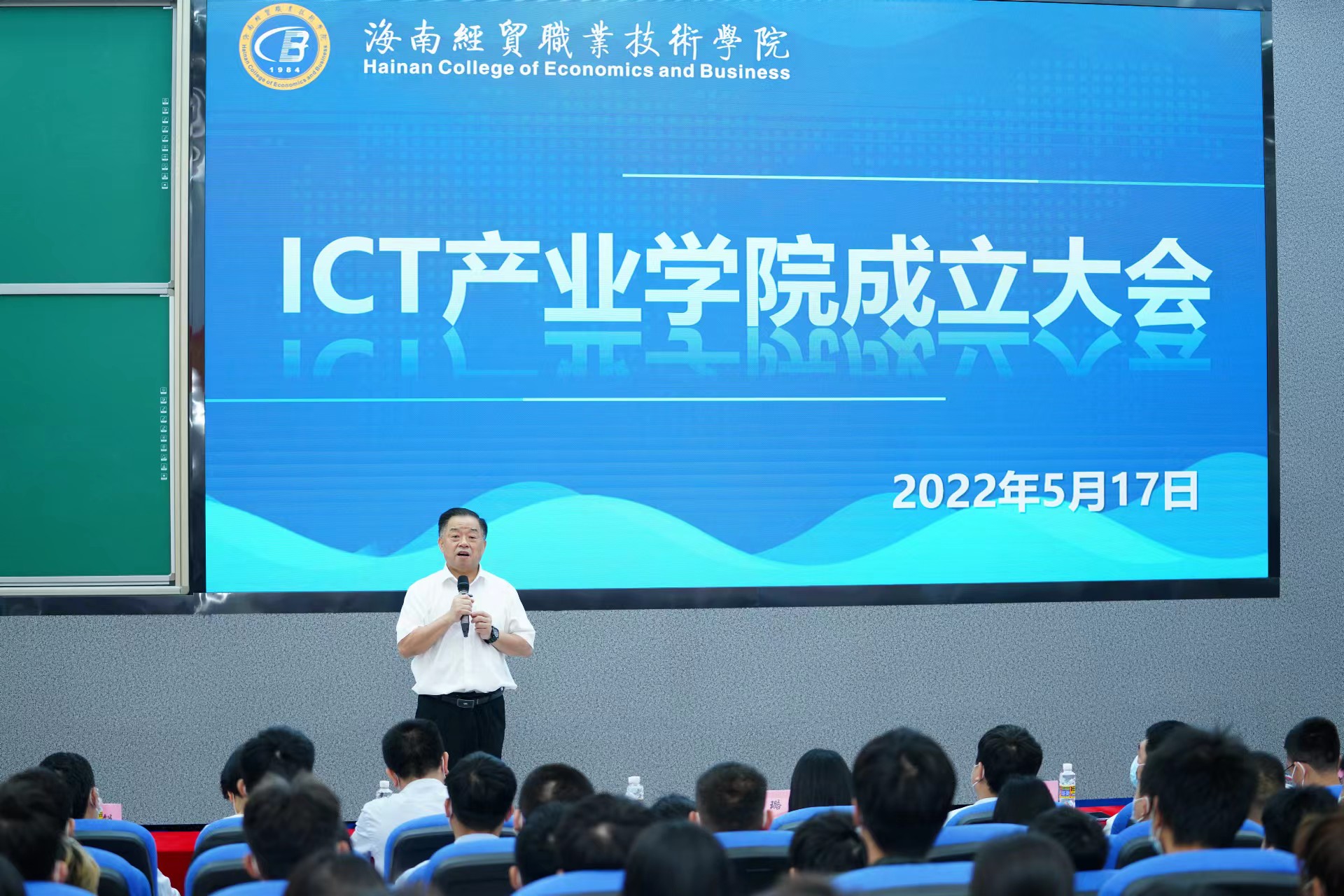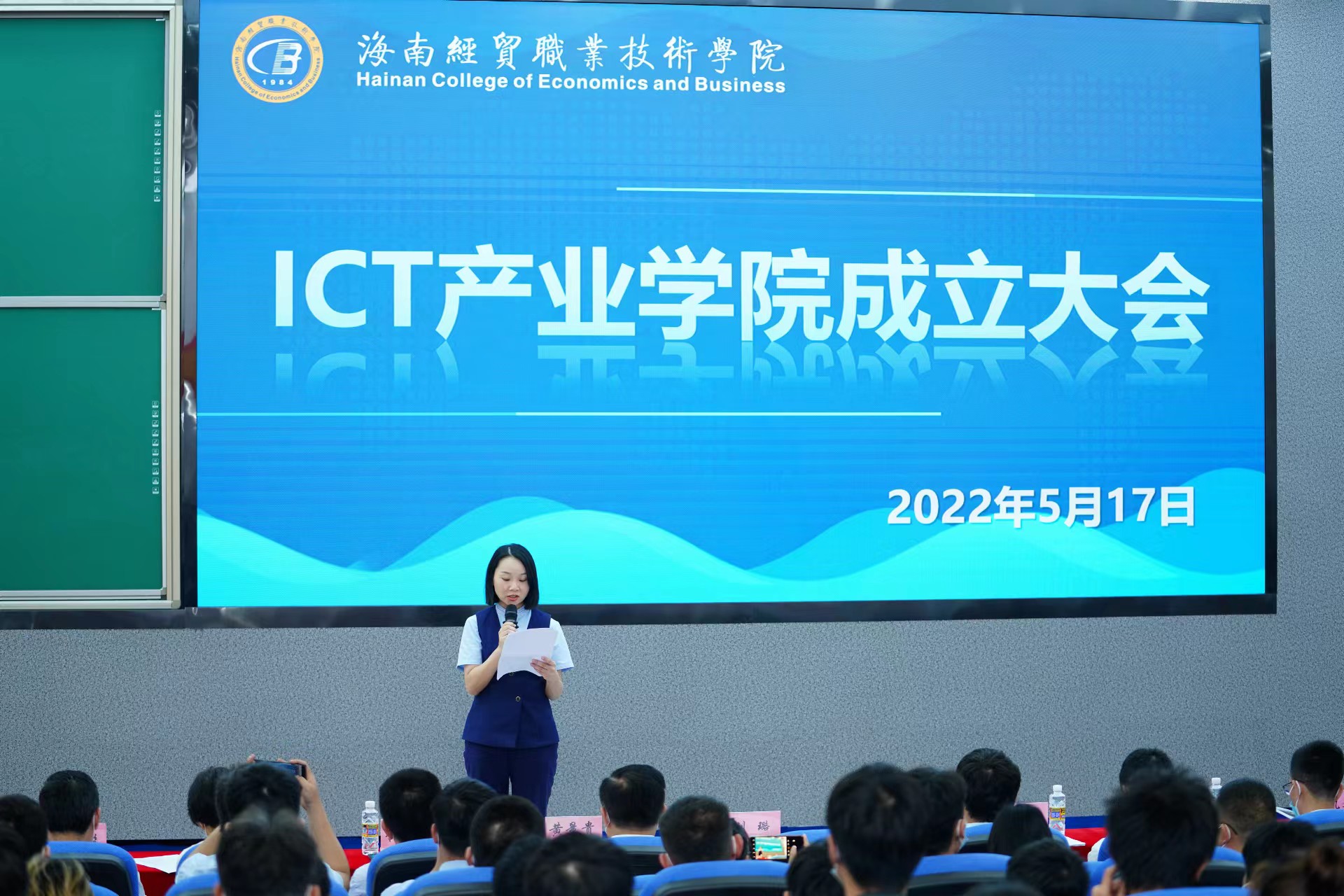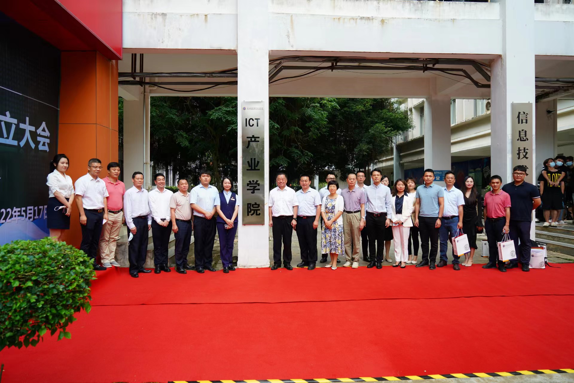 2022年5月17日下午,海南经贸职业技术学院ICT产业学院揭牌成立,学校党委副书记、院长黄景贵,党委副书记崔昌华,副院长李莉及海南复兴城产业园投资管理有限公司、科大讯飞股份有限公司等11家合作单位负责人出席仪式并为产业学院揭牌。