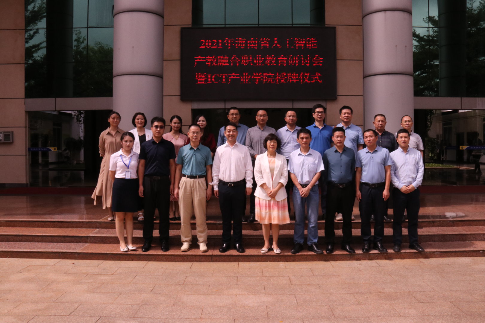 海南经贸职业技术学院党委副书记、院长黄景贵,科大讯飞公司副总裁兰明博、海南分公司总经理张树彬,海南经贸职业技术学院副长李莉,广西贸职业技术学院人工智能产业学院副院长莫小泉,海南科技职业大学信息工程学院院长施金妹,海南省人工智能学会王艺臻博士,海口经济学院网络学院院长耿强,海南工商职业学院信息工程学院院长陈俊,海南职业技术学院工业与信息学院副院长斯琴高娃,海南好思达网络科技有限公司人事经理王晨曦等参加会议。