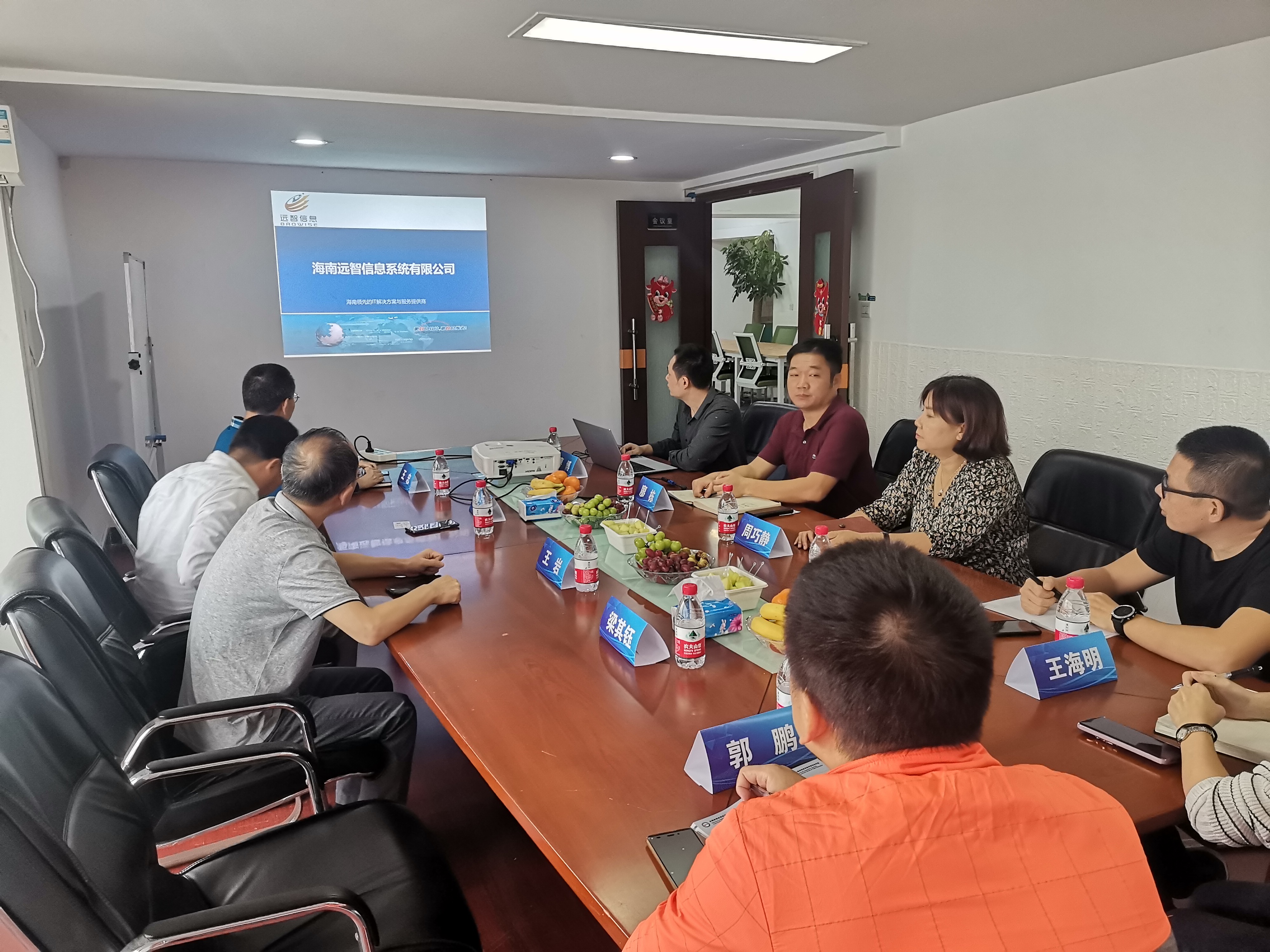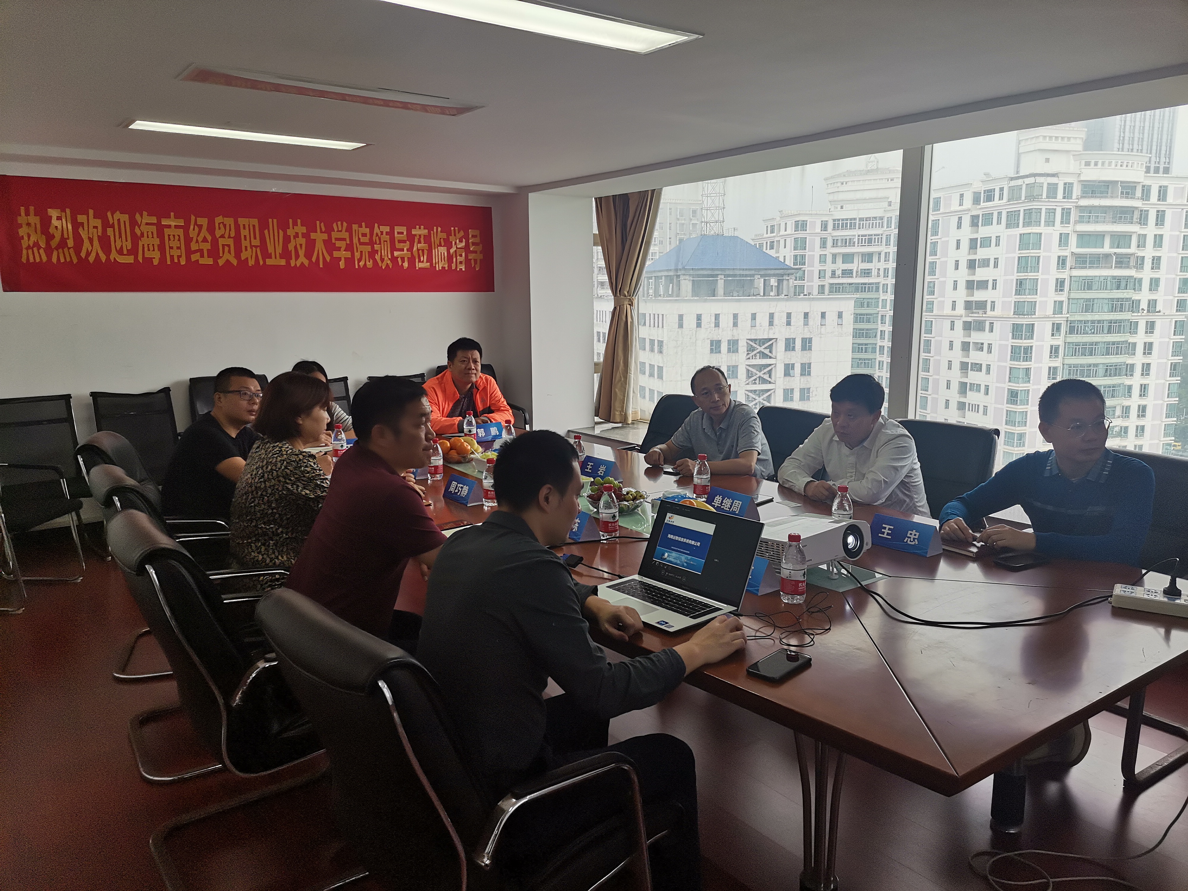 在洽谈会上,海南远智信息系统有限公司的总经理廖博对公司的发展历程、技术优势和服务案例进行了详细介绍,廖总表示软件开发和系统整体解决方案是公司的主要优势,所服务的领域包括医疗、教育、政府等行业。随后,王忠院长将海经贸太阳网集团tcy8722的专业特点和学生就业方向进行了说明,王院长针对教师挂职锻炼、企业横向纵向课题申报、学生顶岗实习等方面与远智公司进行探讨,希望在上述方面可以与远智公司展开合作。