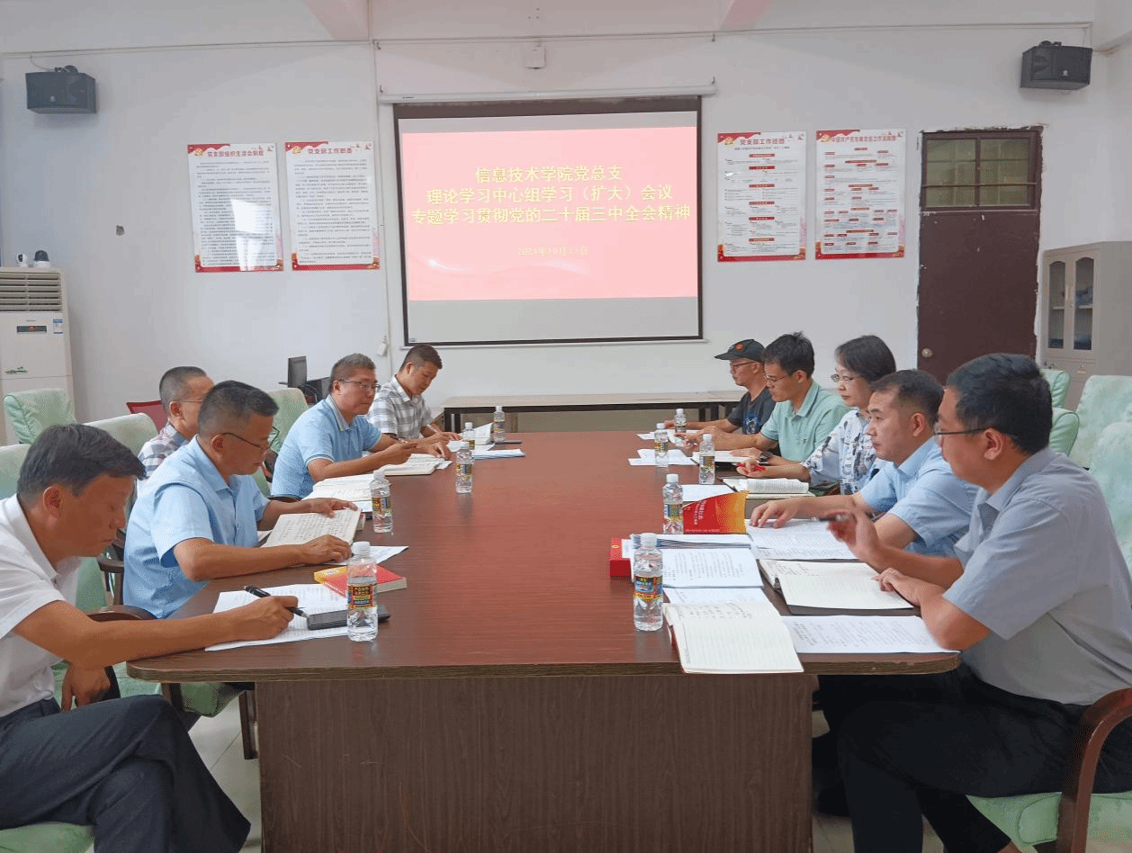 2024年10月15日上午,太阳网集团tcy8722党总支理论学习中心组召开扩大会议,专题学习贯彻党的二十届三中全会精神。太阳网集团tcy8722领导班子成员,各党支部书记,党政办、教务办和学工办负责人参加会议,会议由党总支书记符胜主持。