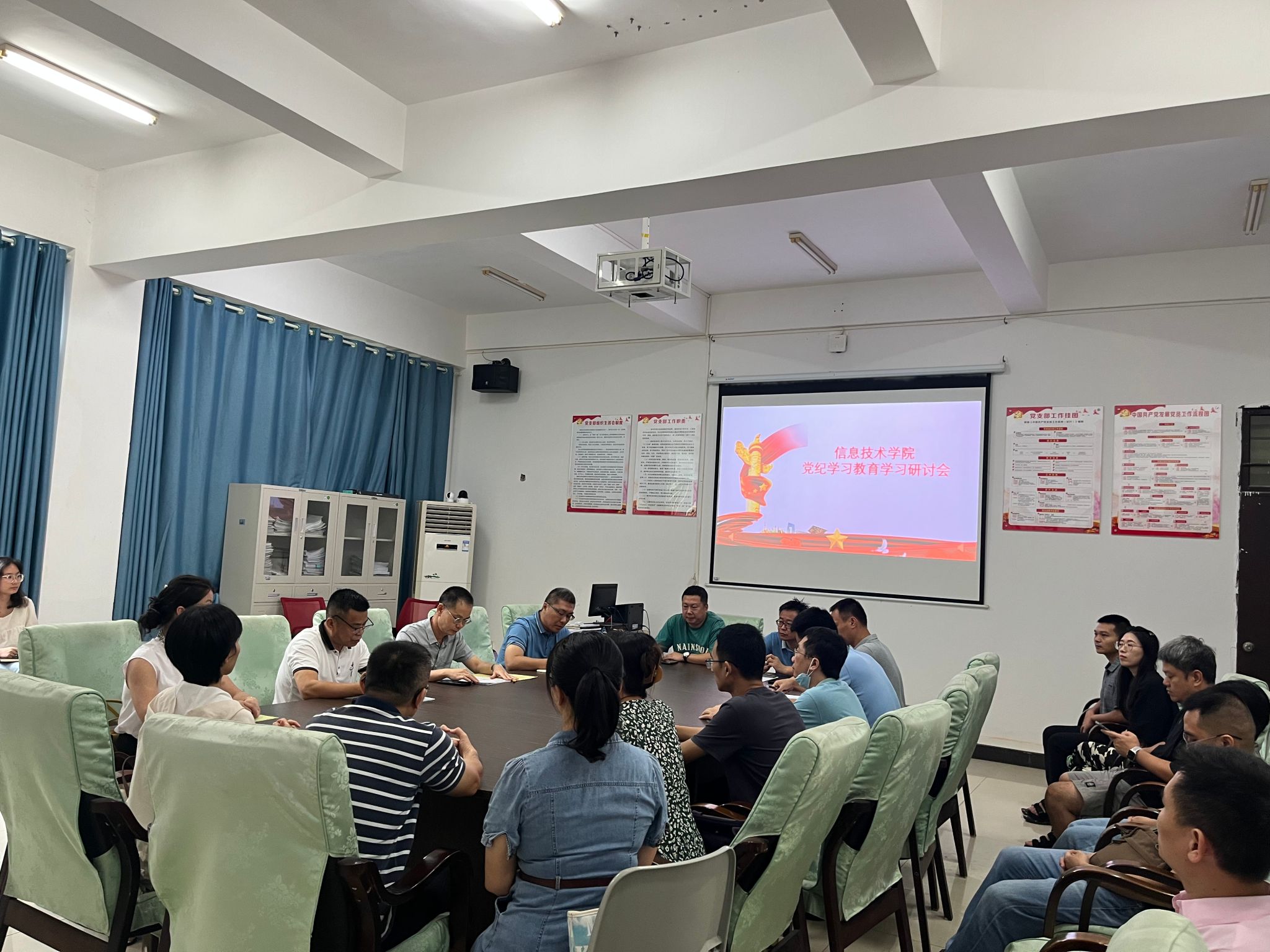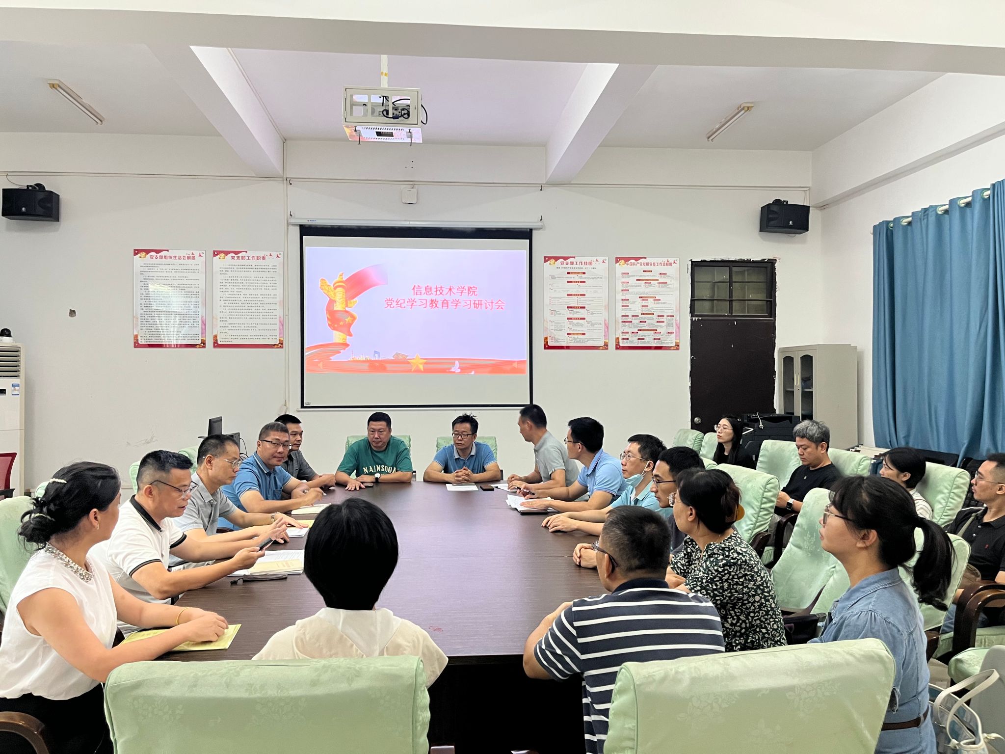 6月25日,太阳网集团tcy8722党总支在4-213会议室召开党纪学习教育学习研讨会。会议由党总支书记符胜主持,学院全体党员参加。
