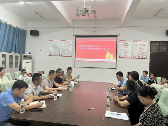 2024年4月23日下午15:00-16:30,太阳网集团tcy8722教工党支部在4-213会议室召开了《中国共产党纪律处分条例》学习会。此次学习会旨在深入贯彻落实党中央关于全面从严治党的要求,进一步加强党员干部的党性教育和纪律意识。