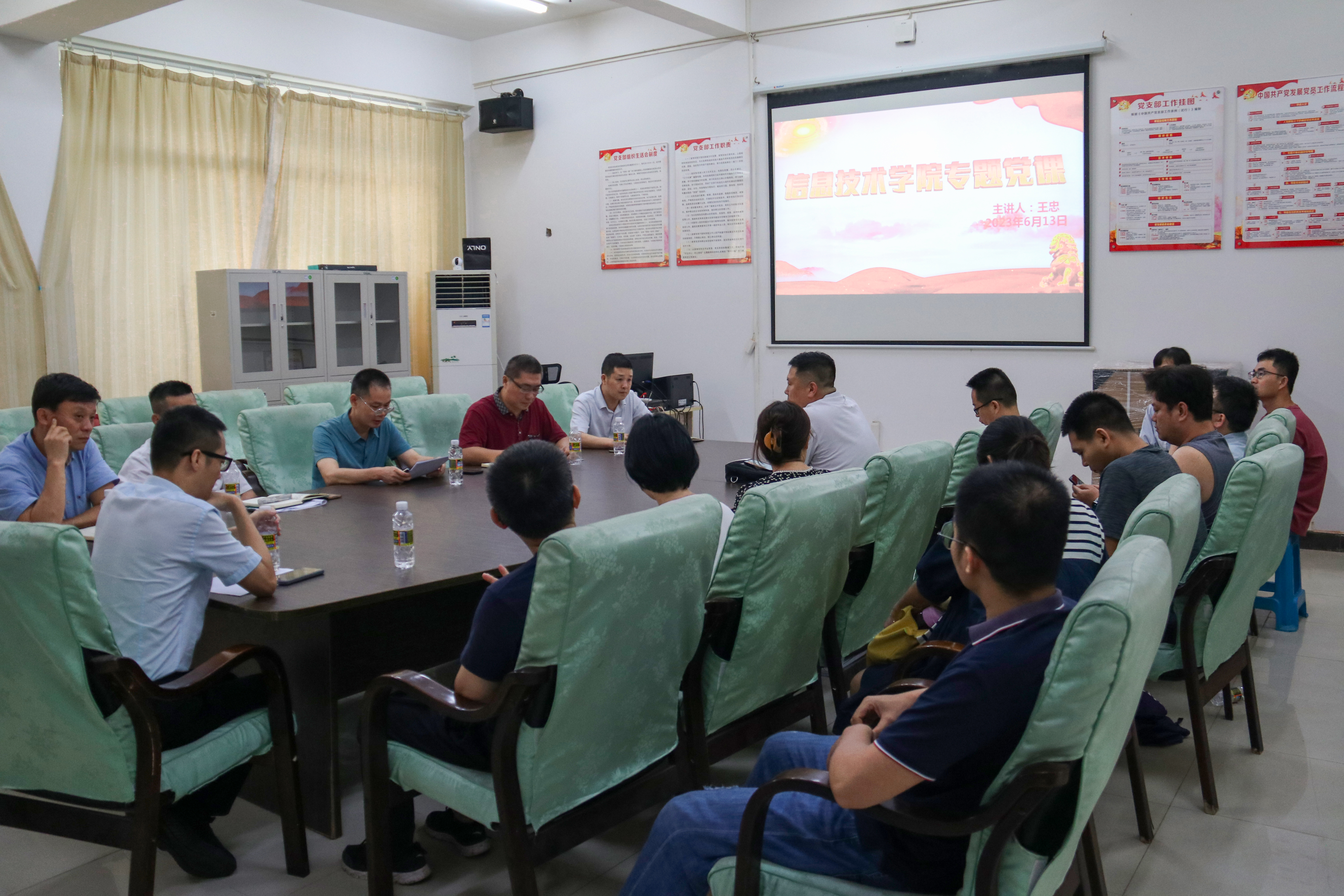 6月13日下午16时,太阳网集团tcy8722院长王忠在4-213会议室以《习近平关于职业教育的重要论述》为题,给全院全体师生党员讲授“学习贯彻习近平新时代中国特色社会主义思想”主题教育专题党课。