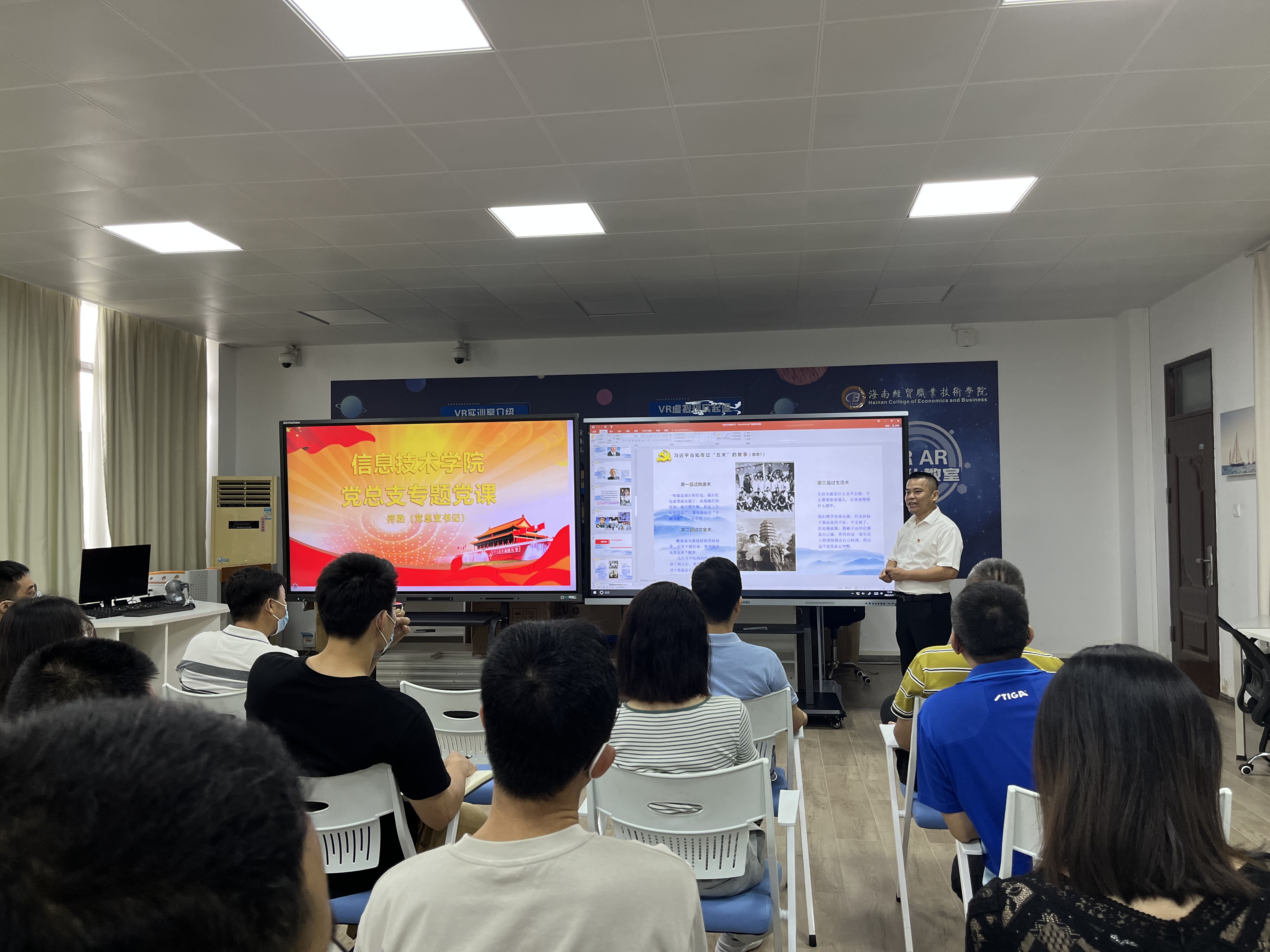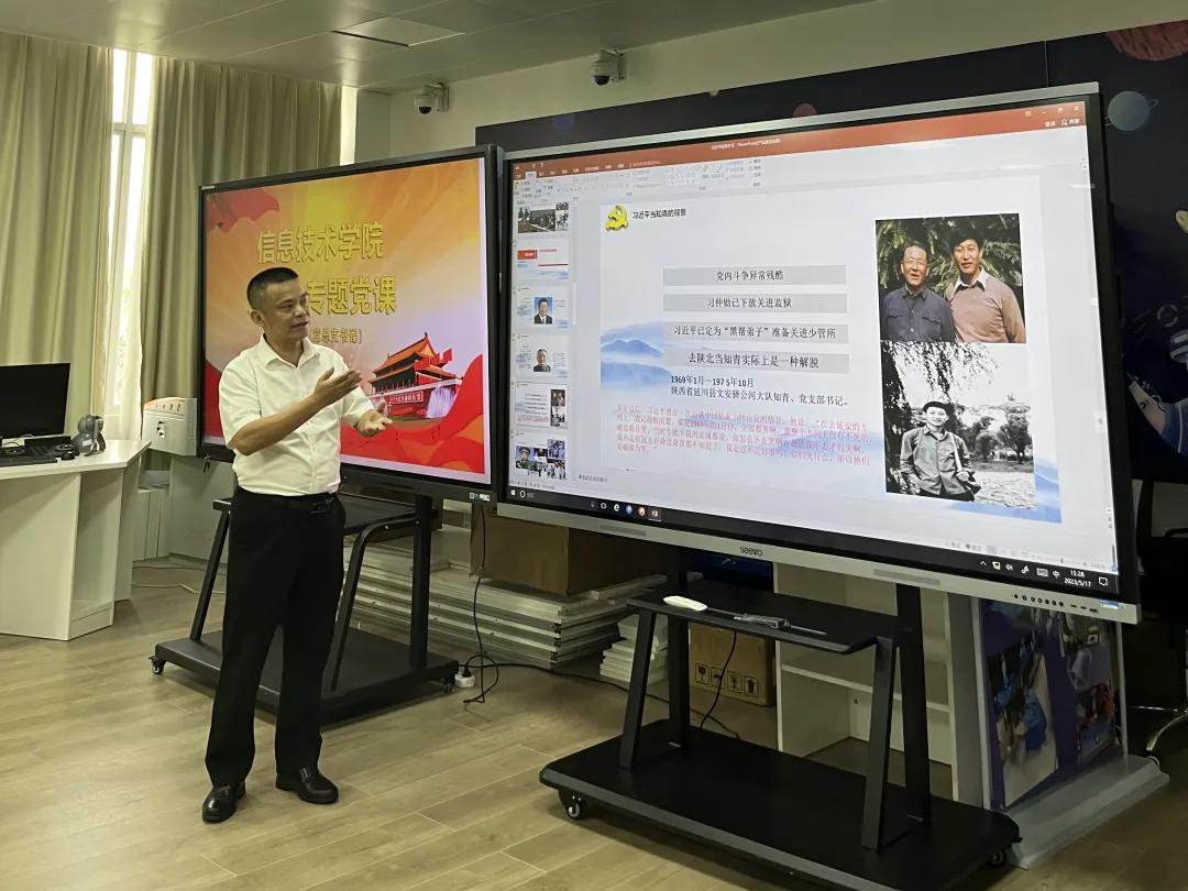 5月22日,太阳网集团tcy8722党总支书记符胜在4-401多媒体教室以《习近平的知青故事》为题,给全院全体师生党员30多人讲授“学习贯彻习近平新时代中国特色社会主义思想”主题教育专题党课。专题党课由教工党支部书记康东副院长主持。
