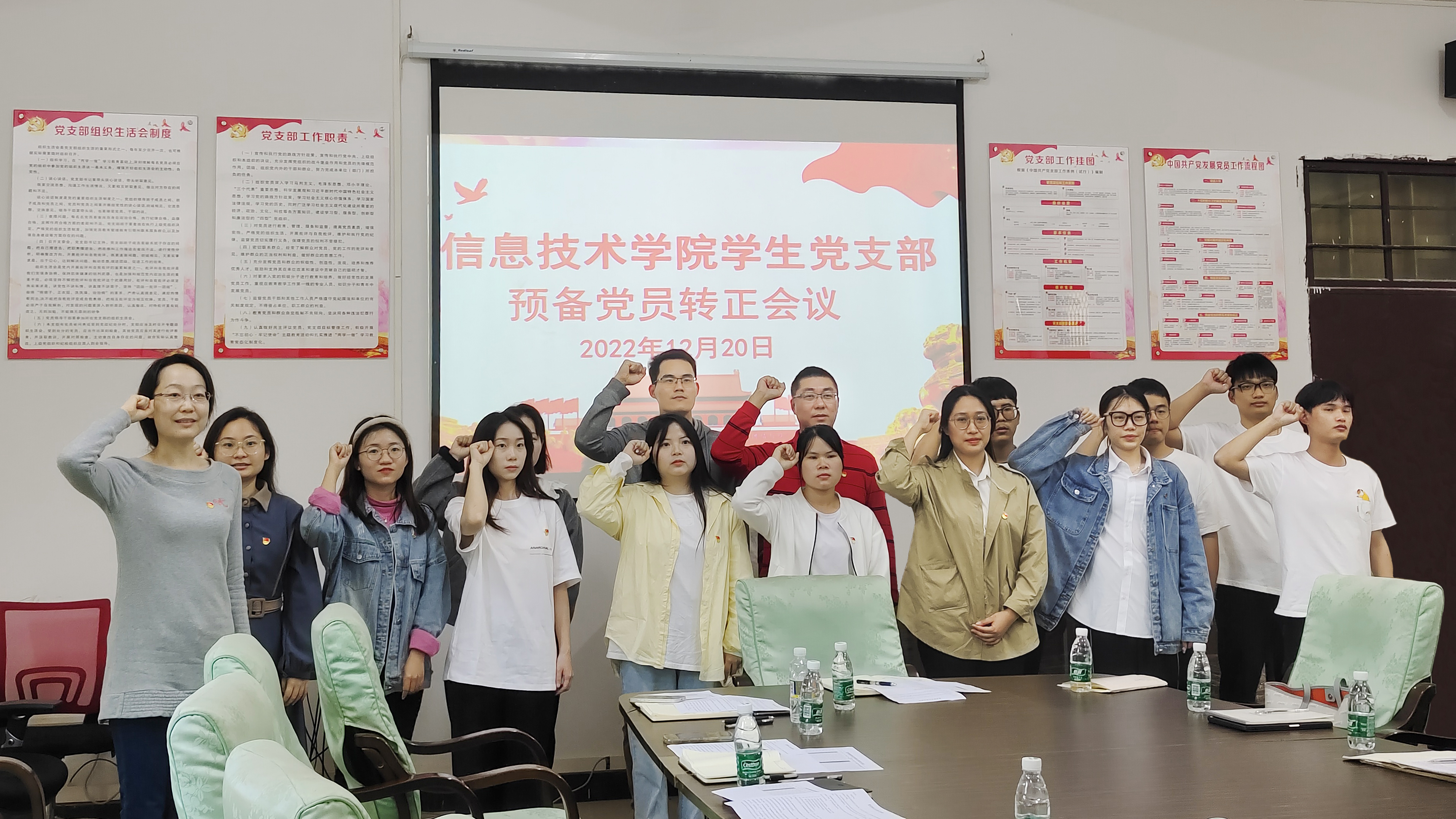 (青年媒体中心 黄正宁讯)2022年12月20日,太阳网集团tcy8722学生党支部在4-213室召开预备党员转正大会。太阳网集团tcy8722党总支副书记黄守官,学生党支部宣传兼纪检委员唐图、组织兼青年委员蔡守正同志、辅导员王智娴及吴淑亲等同志出席转正大会。本次会议由学生党支部书记代晓明主持。