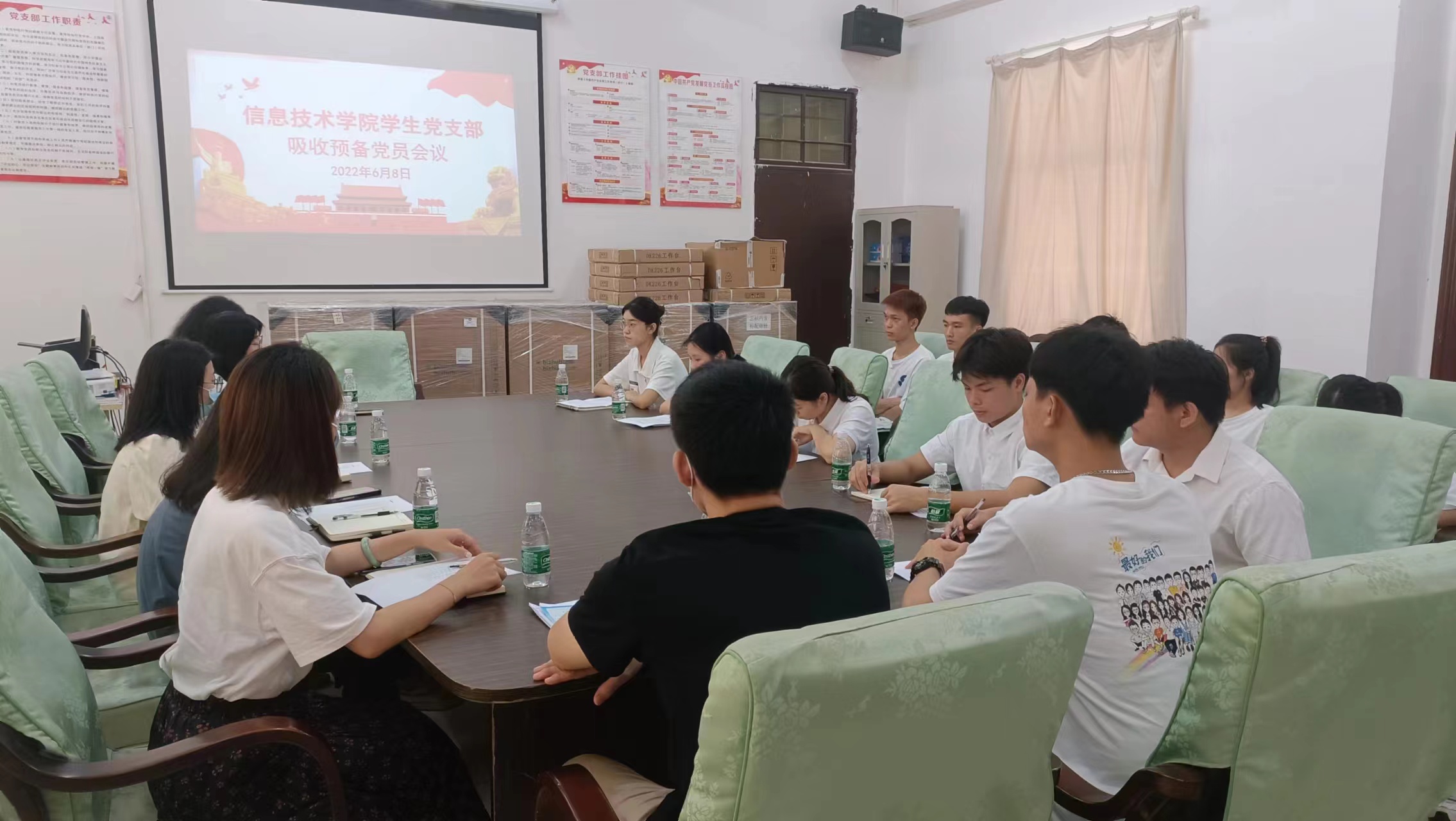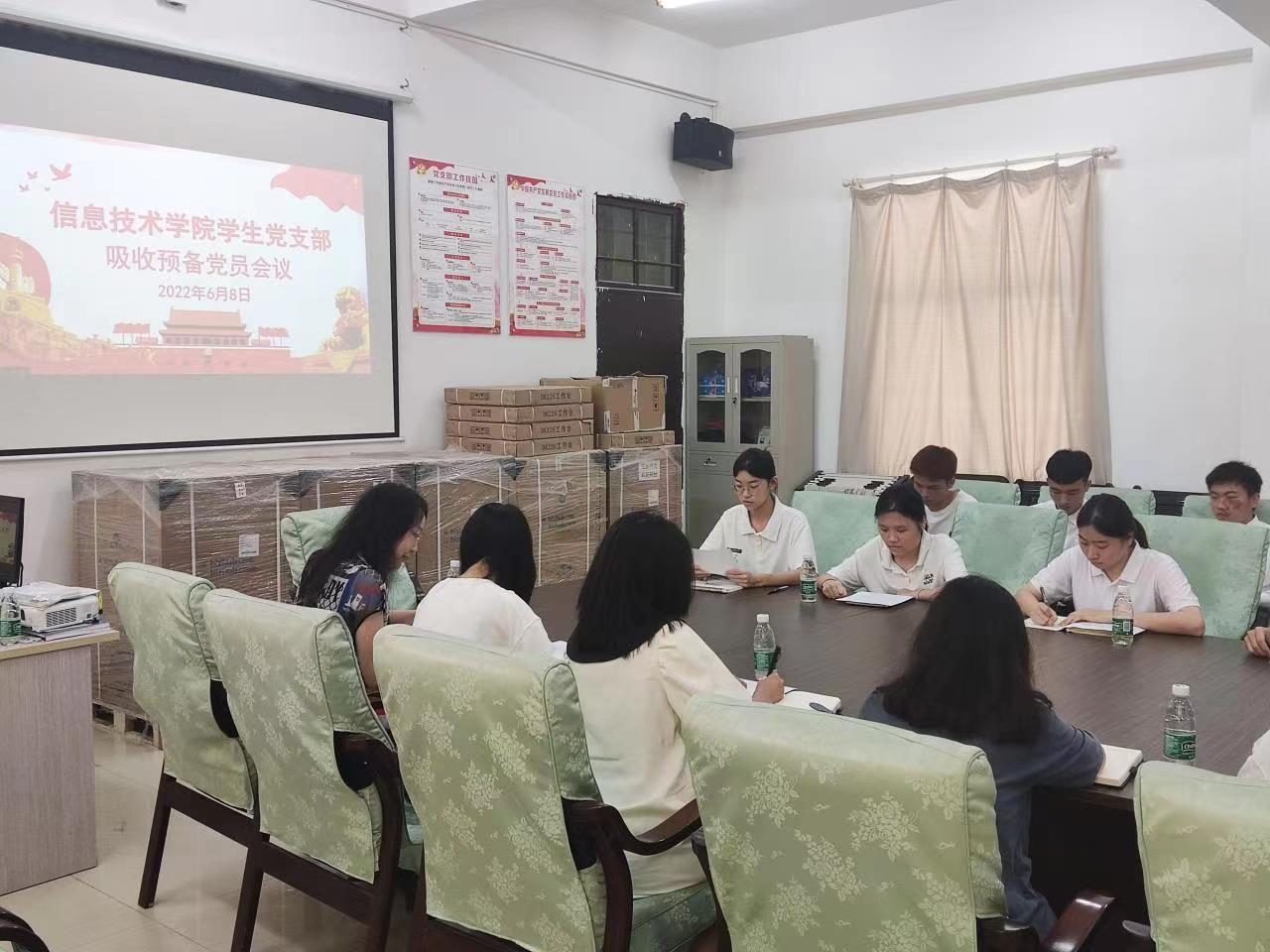 2022年6月8日上午,太阳网集团tcy8722学生党支部召开吸收中共预备党员会议。学生党支部书记代晓明、正式党员老师及本次发展对象参加会议。本次会议由代晓明主持。