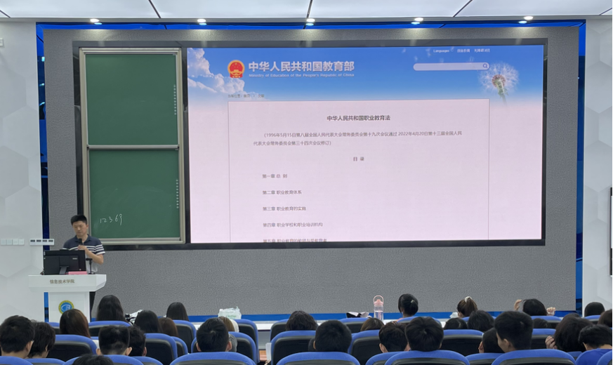 梁老师带领大家一同学习了此次修改的背景过程,修改的总体思路,修改的主要内容,同时进行了主要内容的学习。新《中华人民共和国职业教育法》强调立德树人,德技并修,时刻提醒我们在教育过程中要重视学生思想政治和职业道德教育,全面提高受教育者的综合素质,培养真正的劳模和大国工匠。