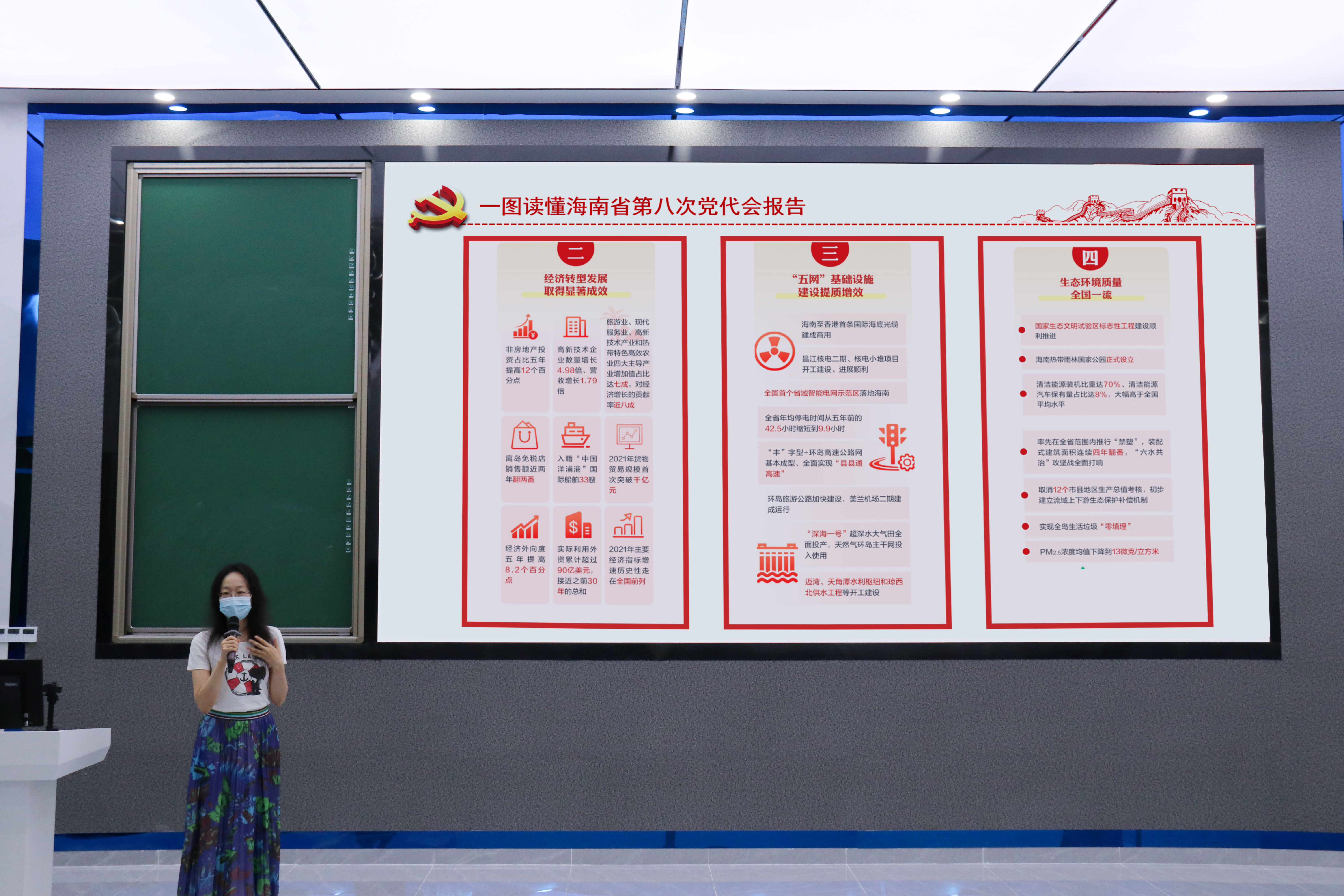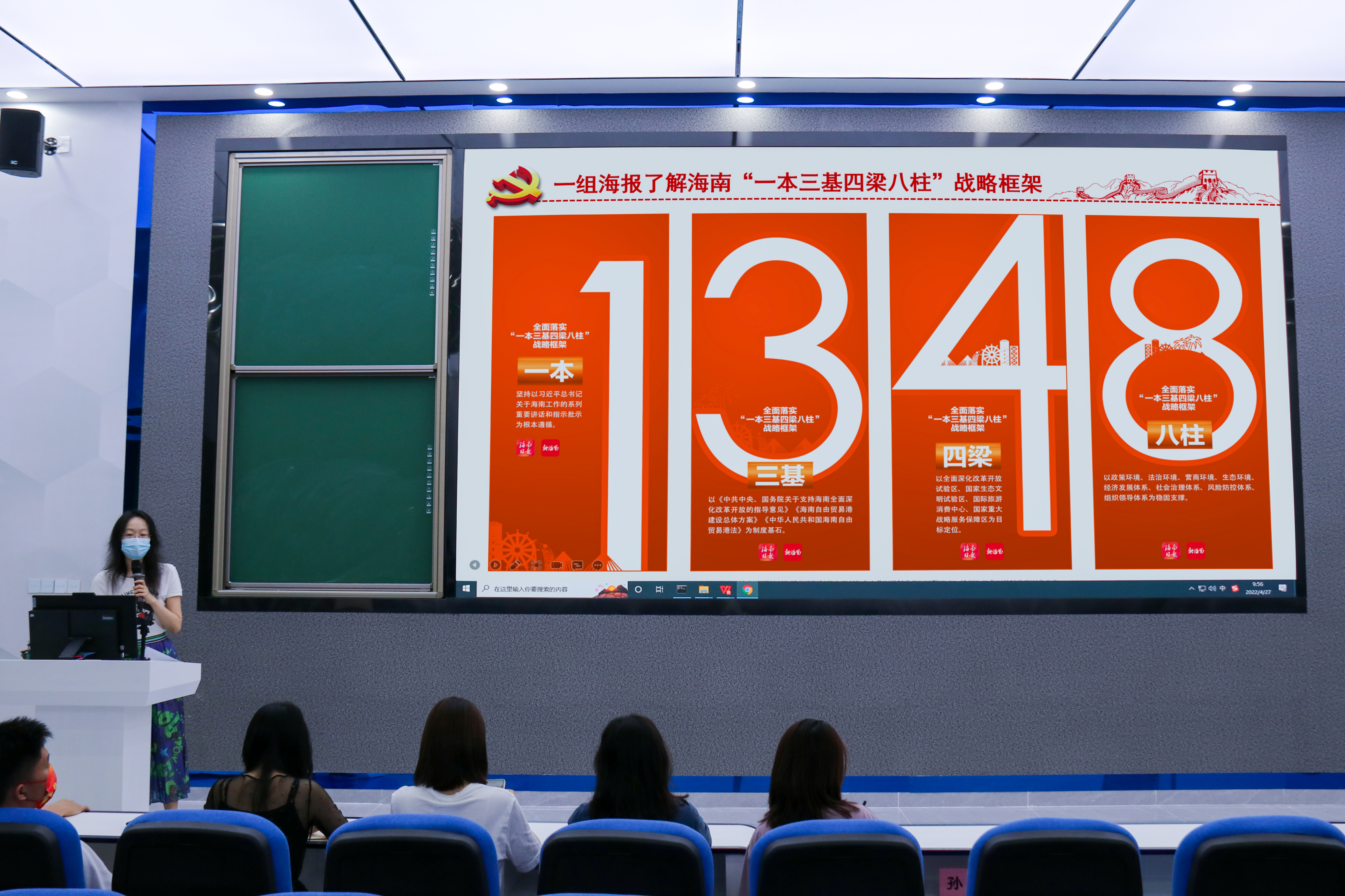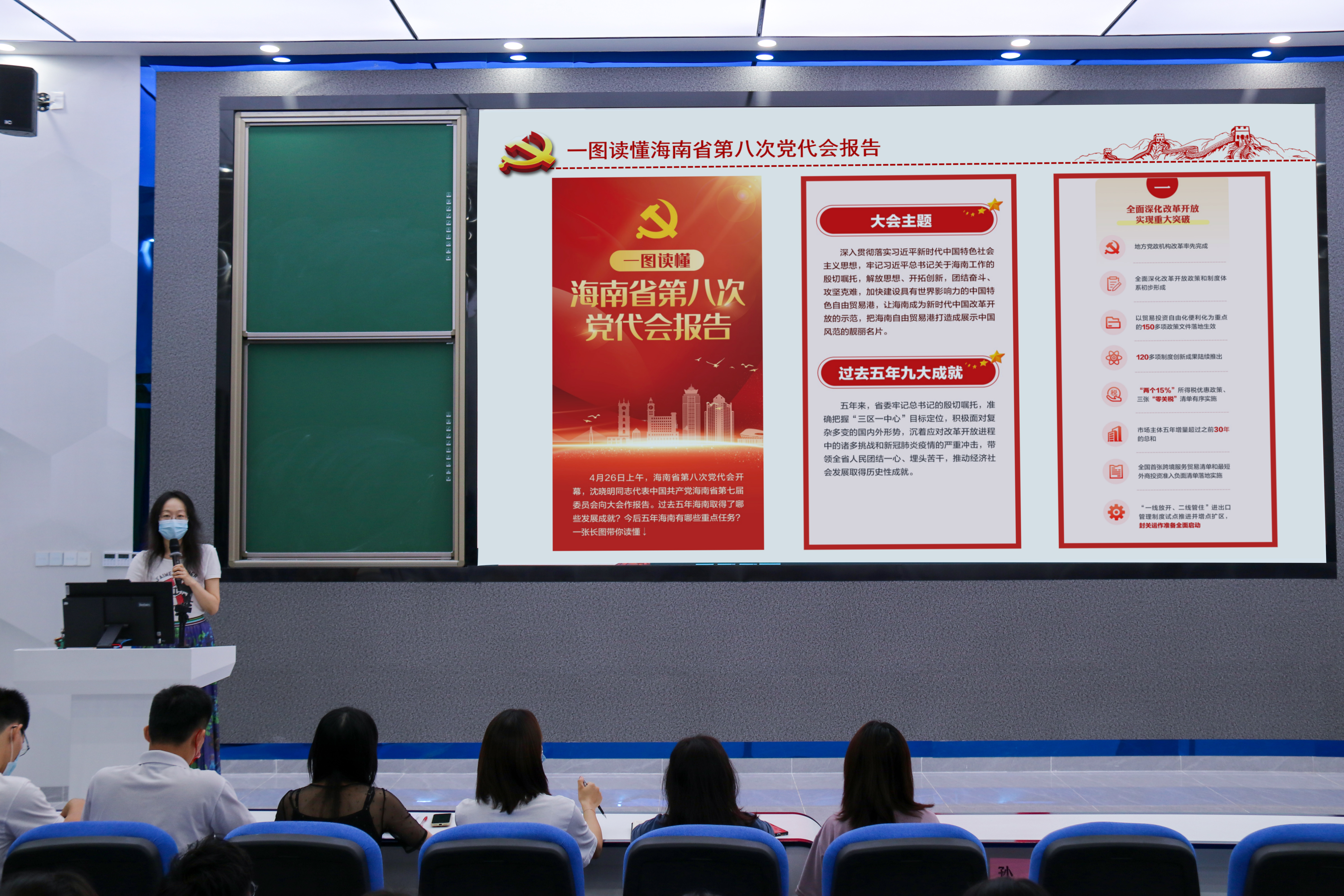 会上,代老师首先介绍了大会报告中提出海南今后五年要全面落实“一本三基四梁八柱”的战略框架,并对三区一中心、三张“零关税”清单、三极一带一区等重点内容和关键名词作了深度解读。大家通过自学和研讨交流的方式,结合自身学习和工作经历,畅谈了自身的体会和收获。