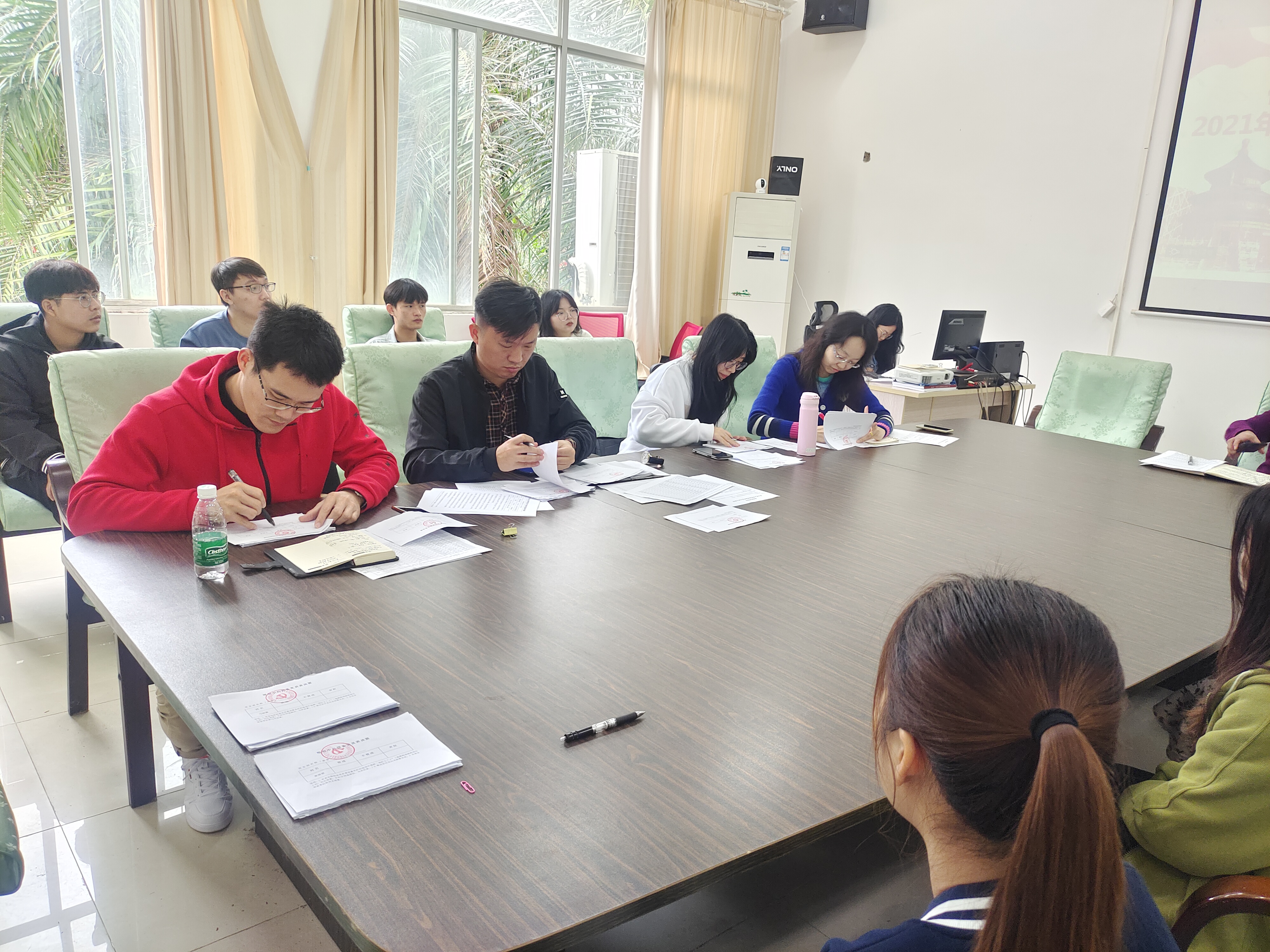 2021年12月20日上午9时,太阳网集团tcy8722学生党支部在4-213开展“2021年下半年吸收中共预备党员大会”。参加本次会议的有:太阳网集团tcy8722党总支书记孙金、学生党支部书记代晓明、学生党支部组织兼青年委员梁其钰老师、宣传兼纪检委员唐图老师、辅导员郭蓉佳老师等教师党员。