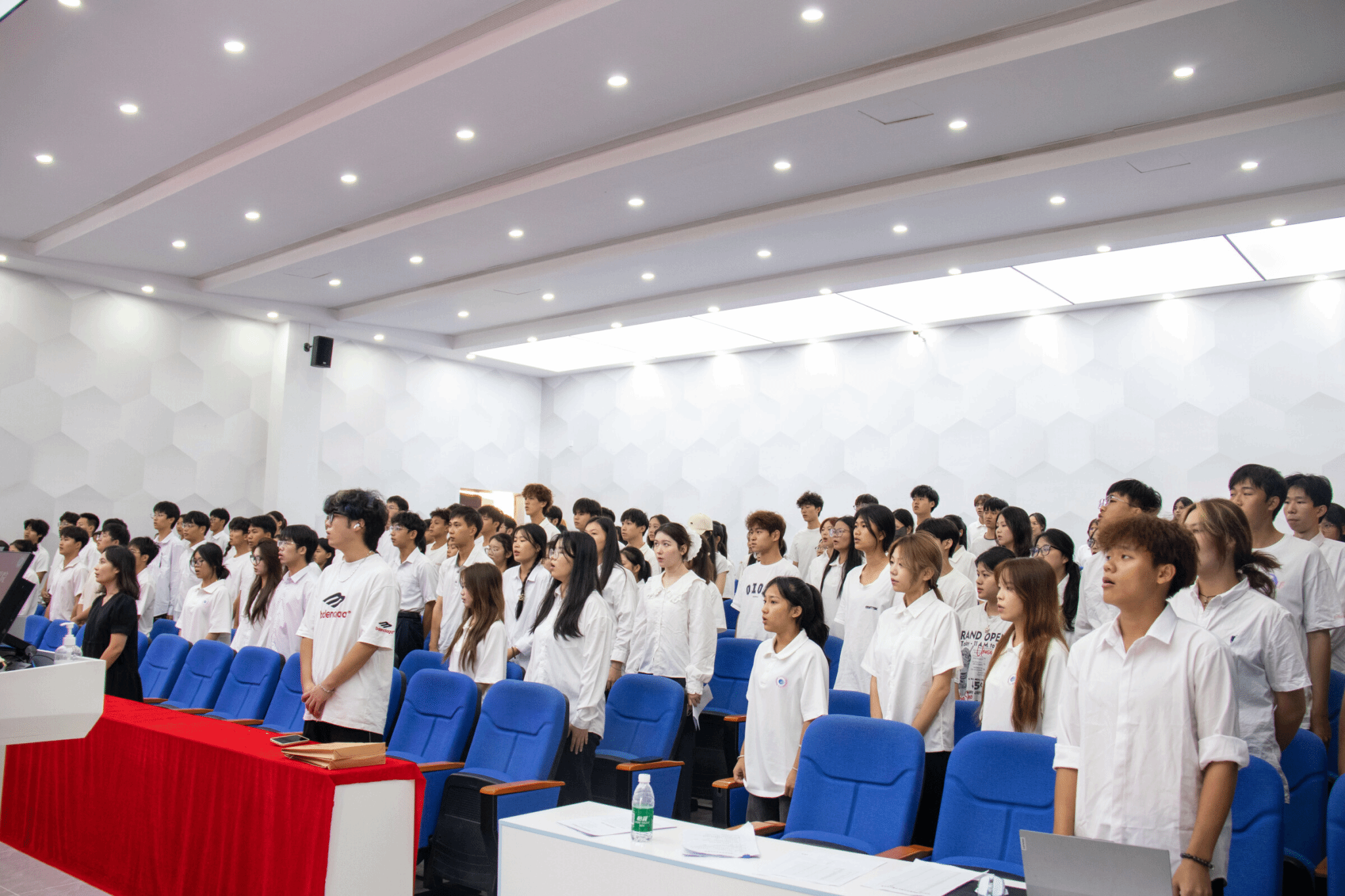 随着雄壮的国歌声响起,全体参会者肃立,共同奏唱国歌,表达对祖国的崇高敬意和无限热爱。