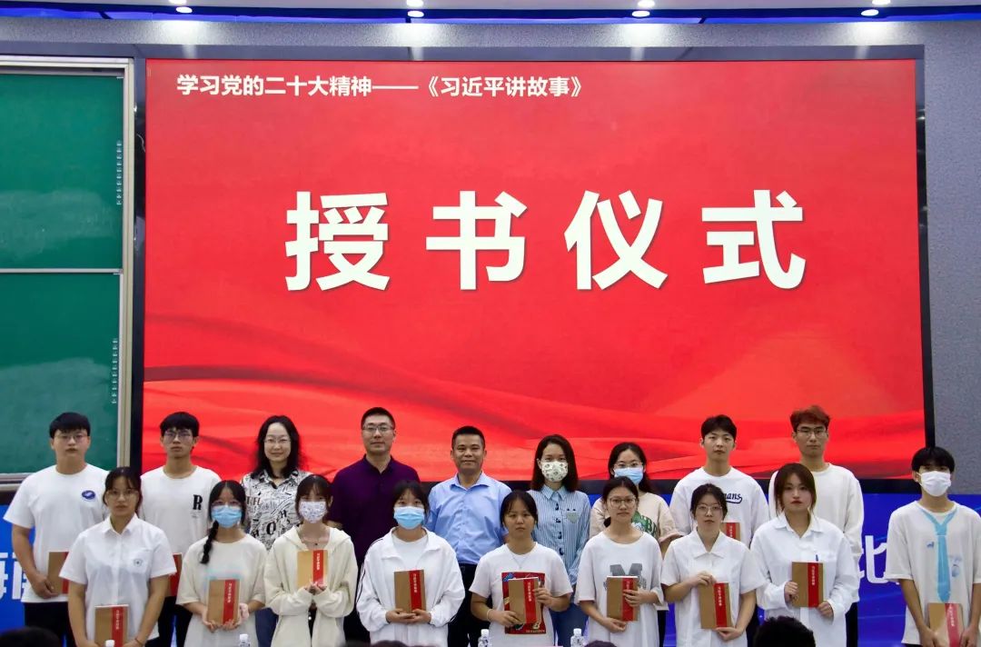 会议第三项,学生党支部书记代晓明老师、21级辅导员蔡守正老师特为我院入党积极分子开展《习近平讲故事》授书仪式。