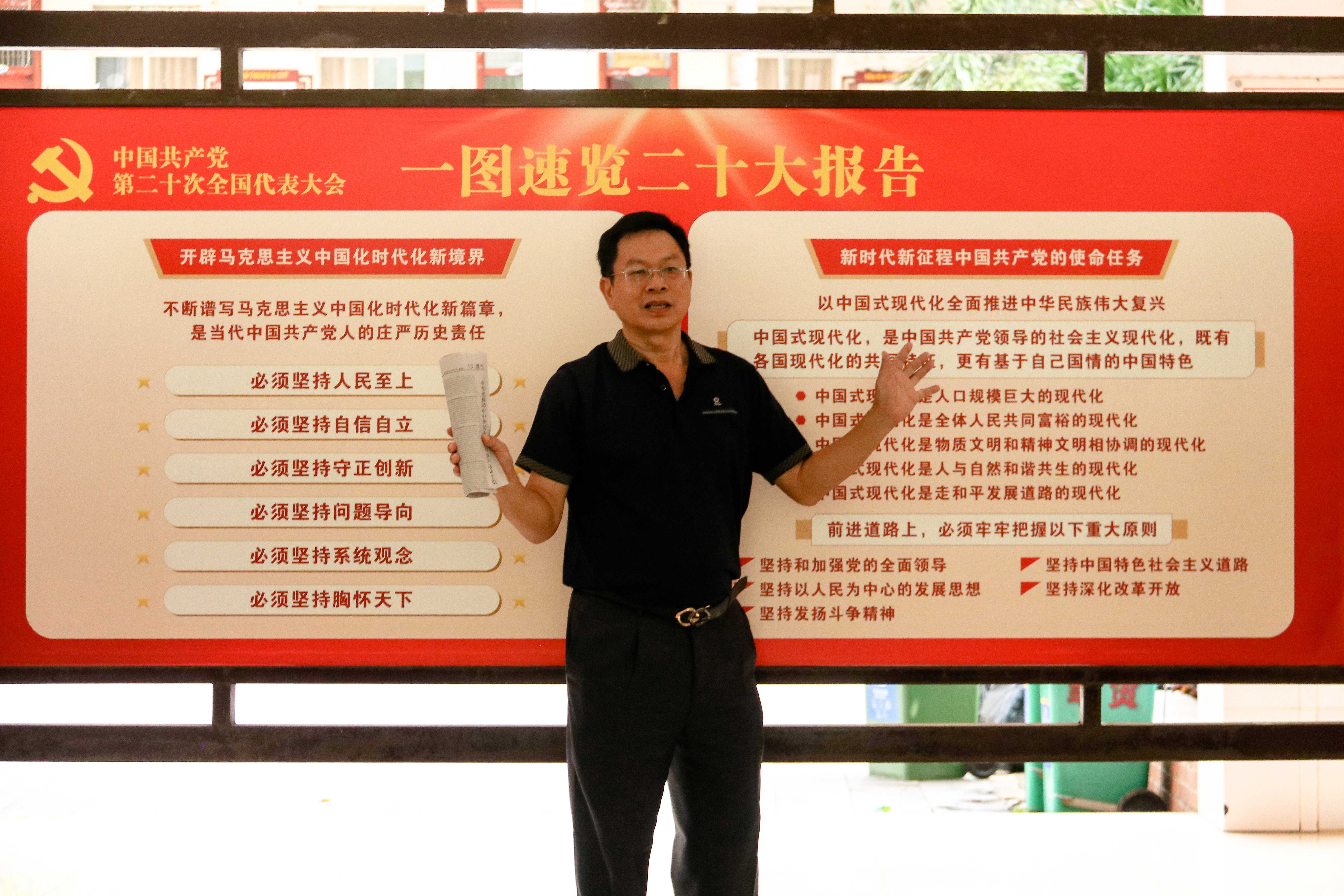 2022年11月30日,为深入贯彻学习党的二十大精神,进一步了解党的发展历史,11月30日上午,五老陈继敏同志在第一教学楼架空层开展党的二十大精神现场教学,我院学生党支部书记代晓明老师与22级学生代表参与此次学习。