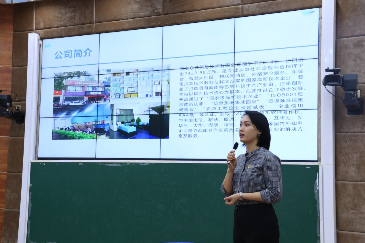 2021年4月27日(青年媒体中心 陈佳慧)讯,我院邀请到海南众诚信息技术有限公司创始人陈兴莹于4月27日下午在2-215教室为我院学生分享她的创业故事为同学们的职业规划做了指导。我院20级计算机网络技术3、4班,20级软件技术1、2班将近200名学生参加了本次报告会。