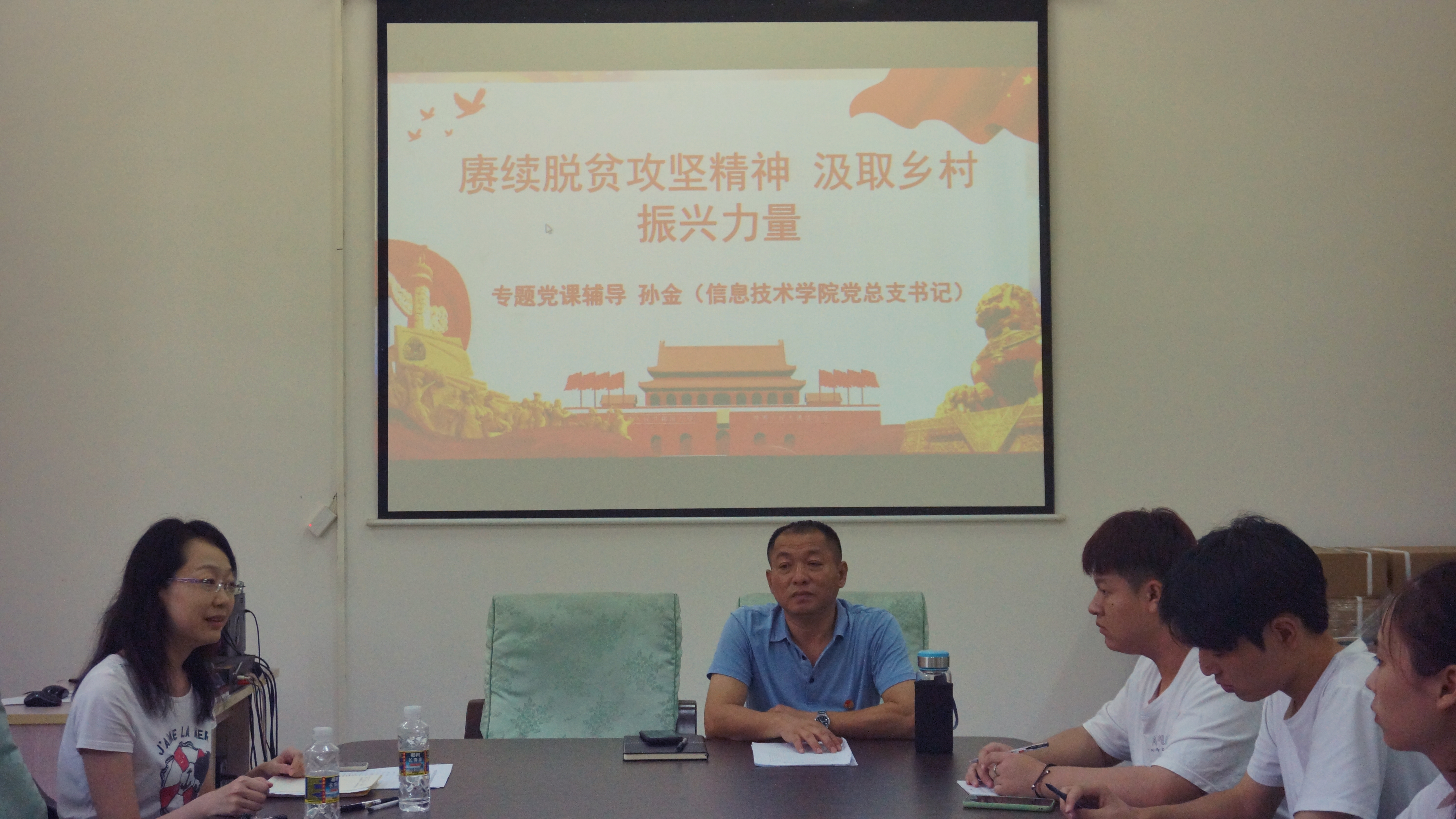 按照学习流程,首先由党总支书记孙金上党课。孙书记与与会人员分享他的脱贫攻坚、乡村振兴工作经历。从乡村振兴战略提出背景及脱贫攻坚取得的成效逐项进行解读,并就乡村振兴总体要求二十字“产业兴旺、生态宜居、乡风文明、治理有效、生活富裕”几大模块,向预备党员们讲述每个模块的规划、目标以及目前所作出的成就。最后他向学生预备党员们提议:“农村是一片广阔的天地,有条件的同学,应该回到乡村去,为发展美丽乡村贡献应有力量!”。