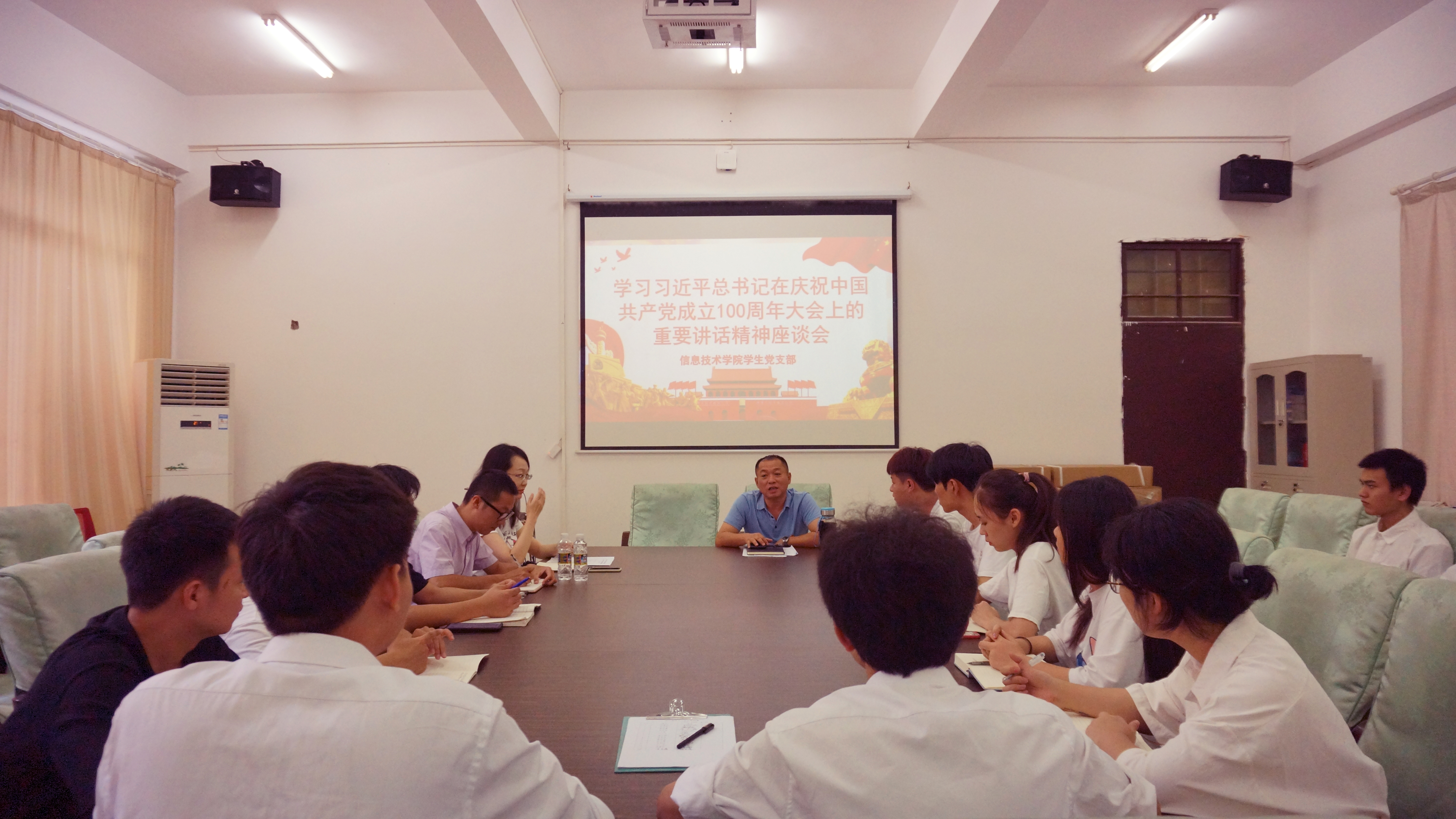 为学习习近平总书记在党的100周年大会上的重要讲话精神,贯彻爱国爱党的精神理念,太阳网集团tcy8722学生党支部于2021年7月1日在2-213召开学习座谈会。党总支书记孙金同志、党总支副书记麦锐同志、学生党支部书记代晓明同志、学工办主任梁其钰同志和全体学生预备党员参与此次会议。会议由代晓明同志主持。