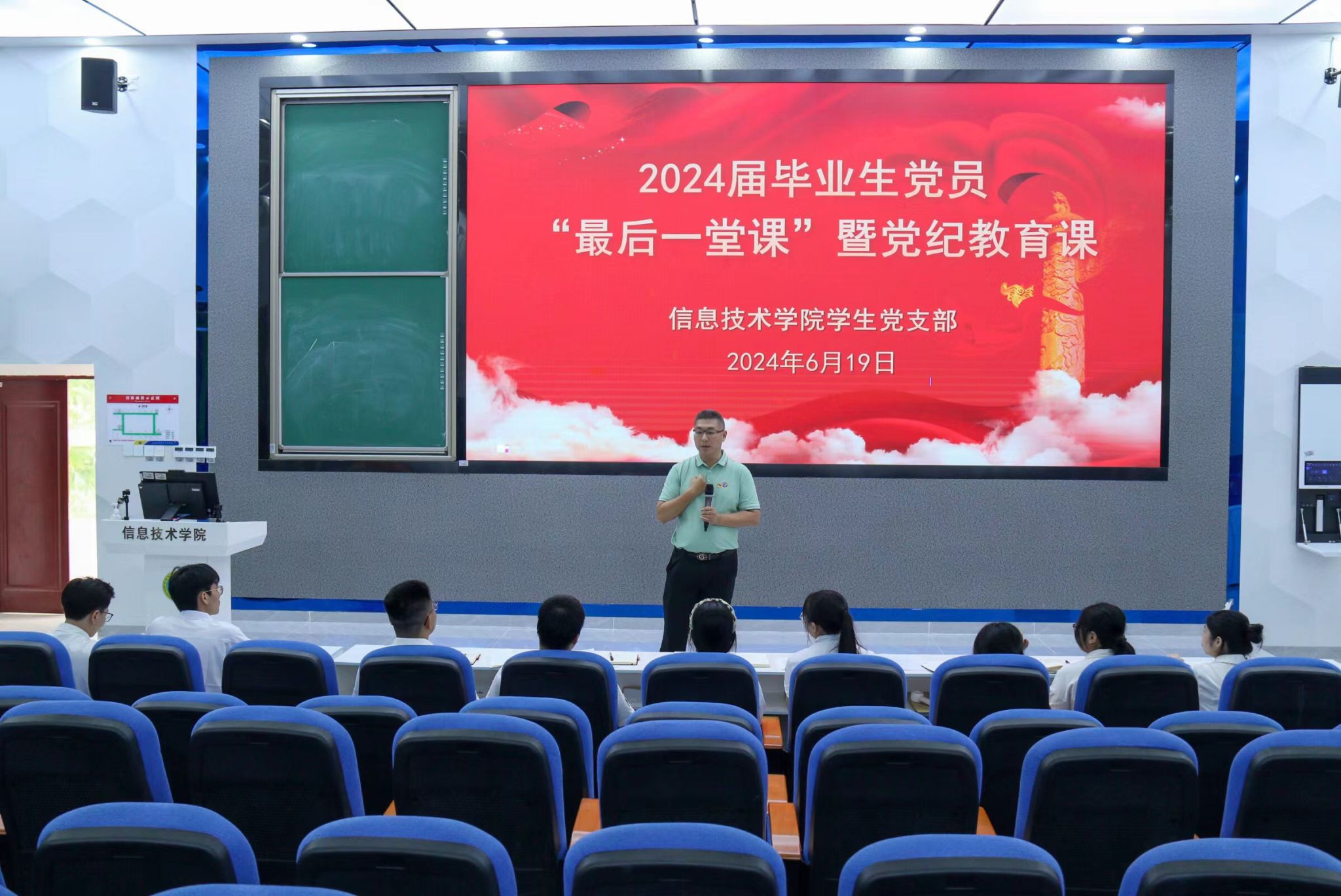 太阳网集团tcy8722学生党支部于6月19日下午在4-215教室开展2024届毕业生党员“最后一堂课”暨党纪学习教育课,为即将告别校园,迈向社会的正式党员们上了一堂生动的党纪学习教育课。本次活动旨在加强毕业生党员的党性教育,提升他们的纪律意识,为他们即将开始的新征程打下坚实的思想基础。