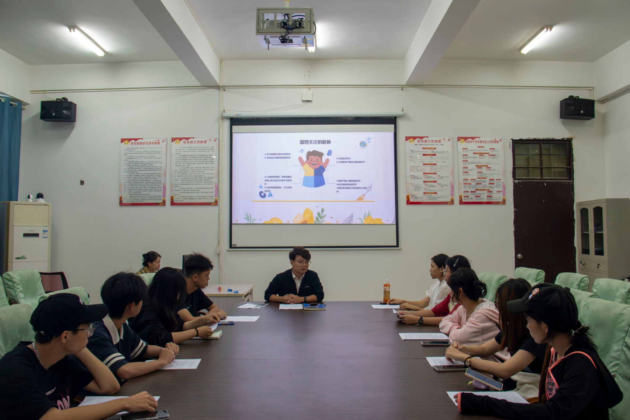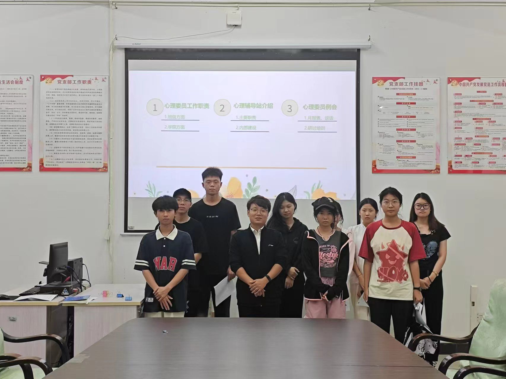 会议最后传达了学校心理中心预约指南、社会援助服务热线等心理咨询渠道,同时为了构建更加完整的心理健康防护网,会议讨论了我院心理辅导站建设事宜。