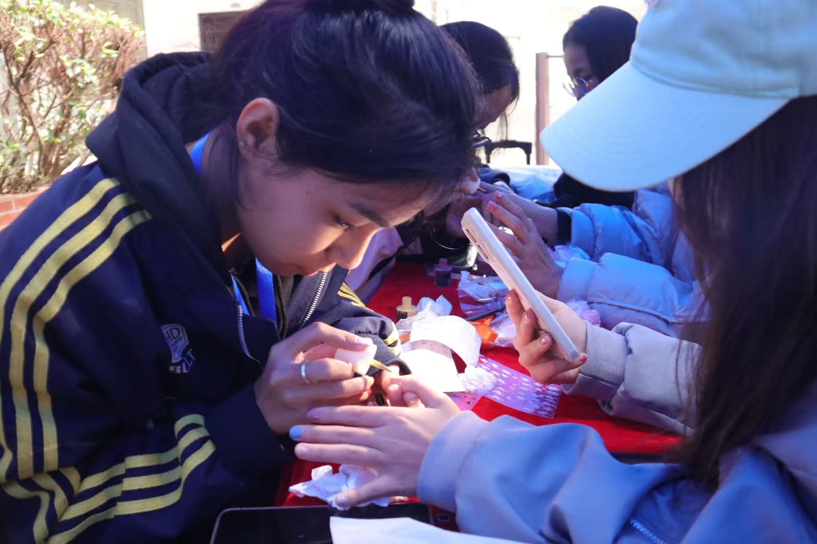 3月7日上午,学生代表们带着灿烂的笑容,手捧一束束鲜花,逐一送到女教职工手中,并送上真挚的节日祝福。每一束鲜花都传递着无尽的感恩与敬爱,让收到礼物的老师们脸上绽放出幸福的笑容。下午,四教一楼空地化身为美甲DIY的乐园,琳琅满目的指甲油和贴纸激发了女性们的无限创意。在欢声笑语中,大家纷纷动手,或在工作人员的指导下,为自己的指尖增添了一抹亮色。一幅幅精美的美甲作品逐一呈现,让人眼前一亮。