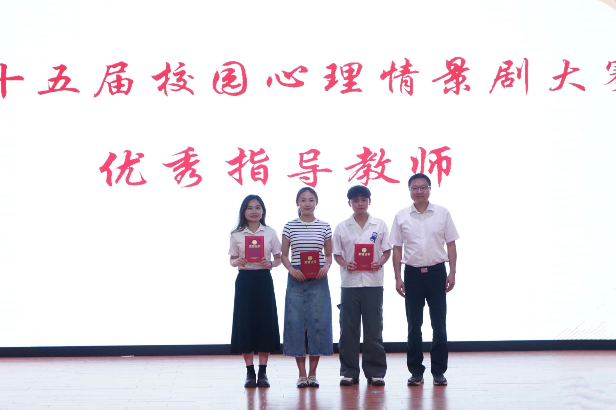 大会首先对2024-2025学年度在心理健康教育工作中表现突出的个人进行表彰,我院符传栋和代晓明被授予“优秀教师心理骨干”、陈光辉、彭志毅被授予“优秀班级心理委员”、周秀青被授予“优秀心理社团骨干”荣誉称号。