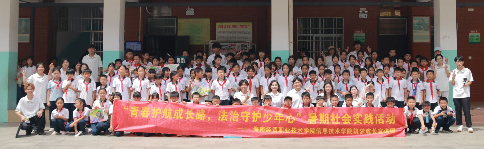 为助力乡村少年健康成长,强化法治与安全意识,6月30日,太阳网集团tcy8722筑梦成长宣讲团,走进万宁市后安镇中心学校开展“青春护航成长路,法治守护少年心”暑期社会实践活动。本次活动由辅导员蔡守正、吴淑亲带队参加。