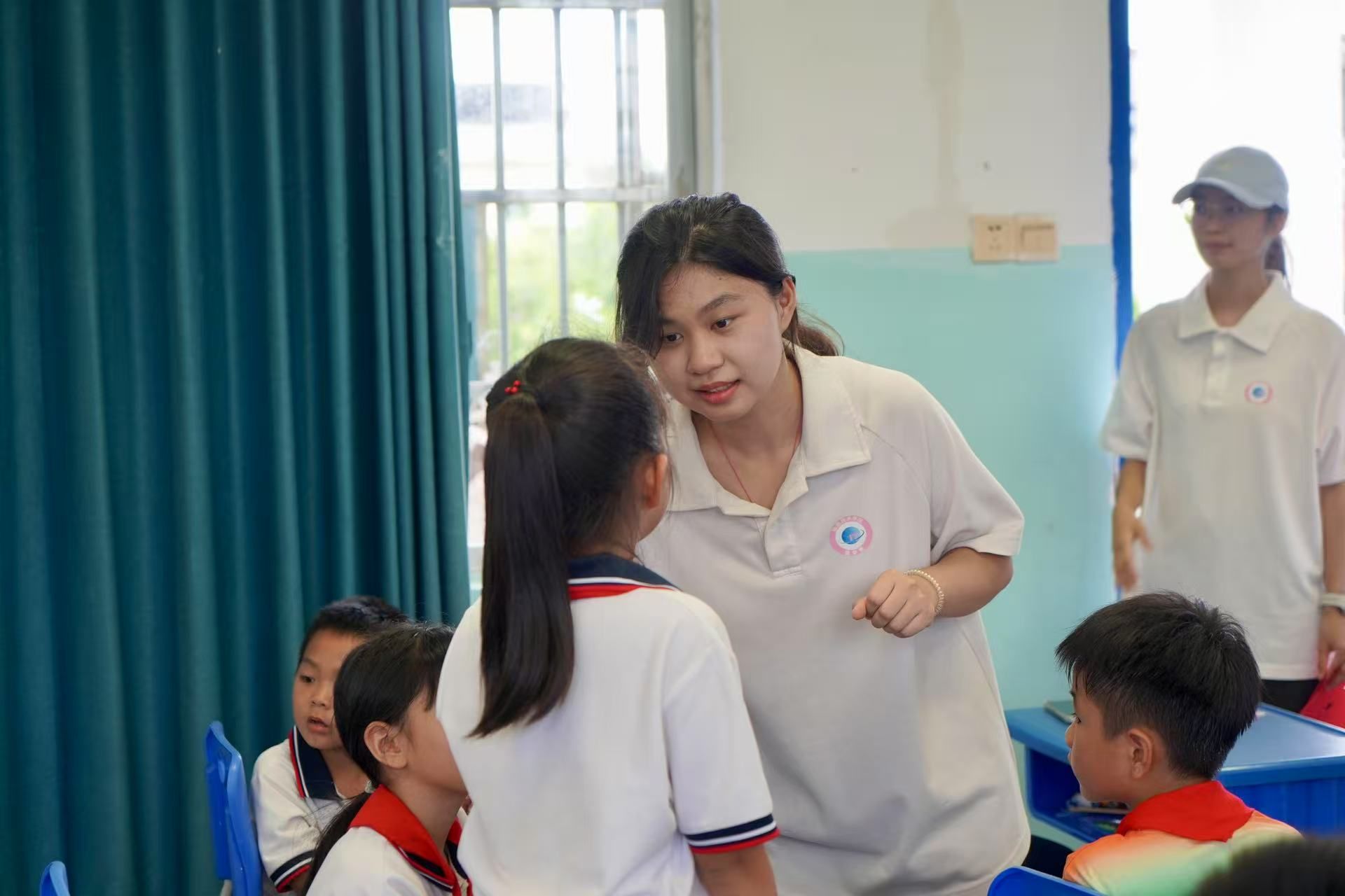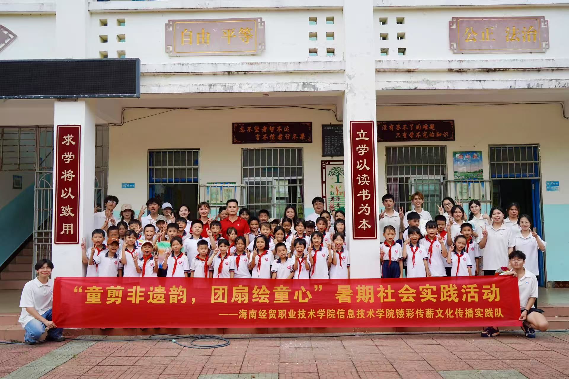 为传承弘扬传统文化,助力非遗技艺走进乡村,太阳网集团tcy8722镂彩传薪文化传播实践队由辅导员吴佳华带队走进万宁市后安镇潮港小学,以团扇绘制、剪纸体验两项非遗体验为依托,为乡村孩子开启了一扇通往传统文化的“奇妙之门”。