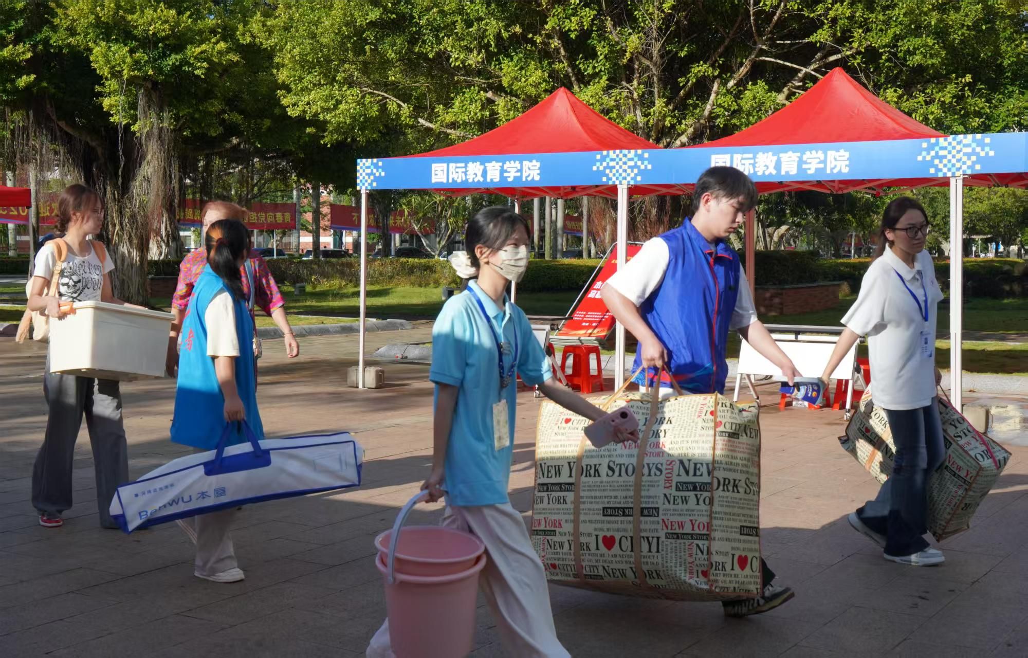 穿梭在人群中的志愿者是现场最亮眼的“风景线”:帮扛行李爬楼梯、持地图讲军训服领取点、带领学弟学妹打报到资料,汗水浸湿衣背仍笑容满面。“去年学长帮我搬行李的样子我还记得,现在换我来接力这份温暖。”志愿者王同学擦汗后,又迎向新身影。