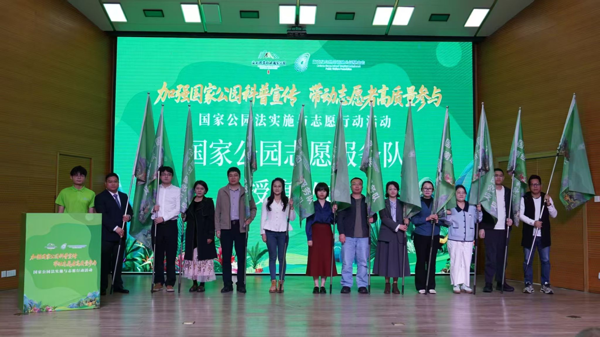 授旗仪式上,我校太阳网集团tcy8722未成年人科普志愿宣讲团代表走上舞台,郑重接过专属队旗。队旗的授予,不仅是对我校长期开展生态志愿服务、持续推进青少年科普工作的充分肯定,也标志着我校青年志愿服务力量正式融入国家公园志愿服务体系,开启了更为规范、有序的发展阶段。