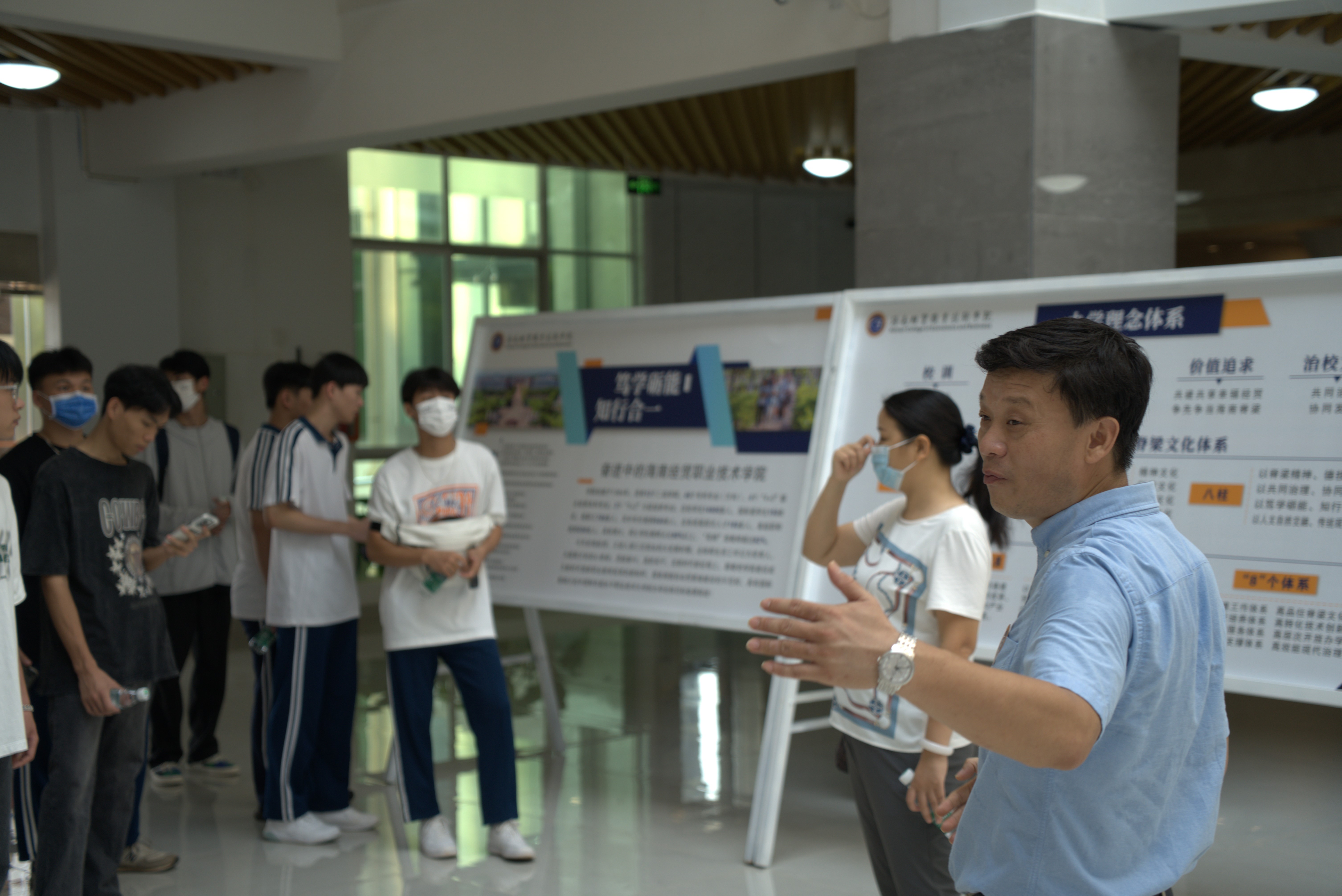 在太阳网集团tcy8722单继周副院长的指引下,大家走进校园,来到图书馆,驻足观看学校关于办学理念体系、中国特色高水平高职学校建设主要标志性成果、多元课程的介绍,全方位、多角度感受学校在师资、课程建设、体艺特色等方面的教育成果。紧接着,大家游览体育馆、操场、实训室等多个场地,随后,单继周副院长在4-207为大家介绍了太阳网集团tcy8722的人才培养、专业设置、教学成果等方面,大家有了更深的了解。
