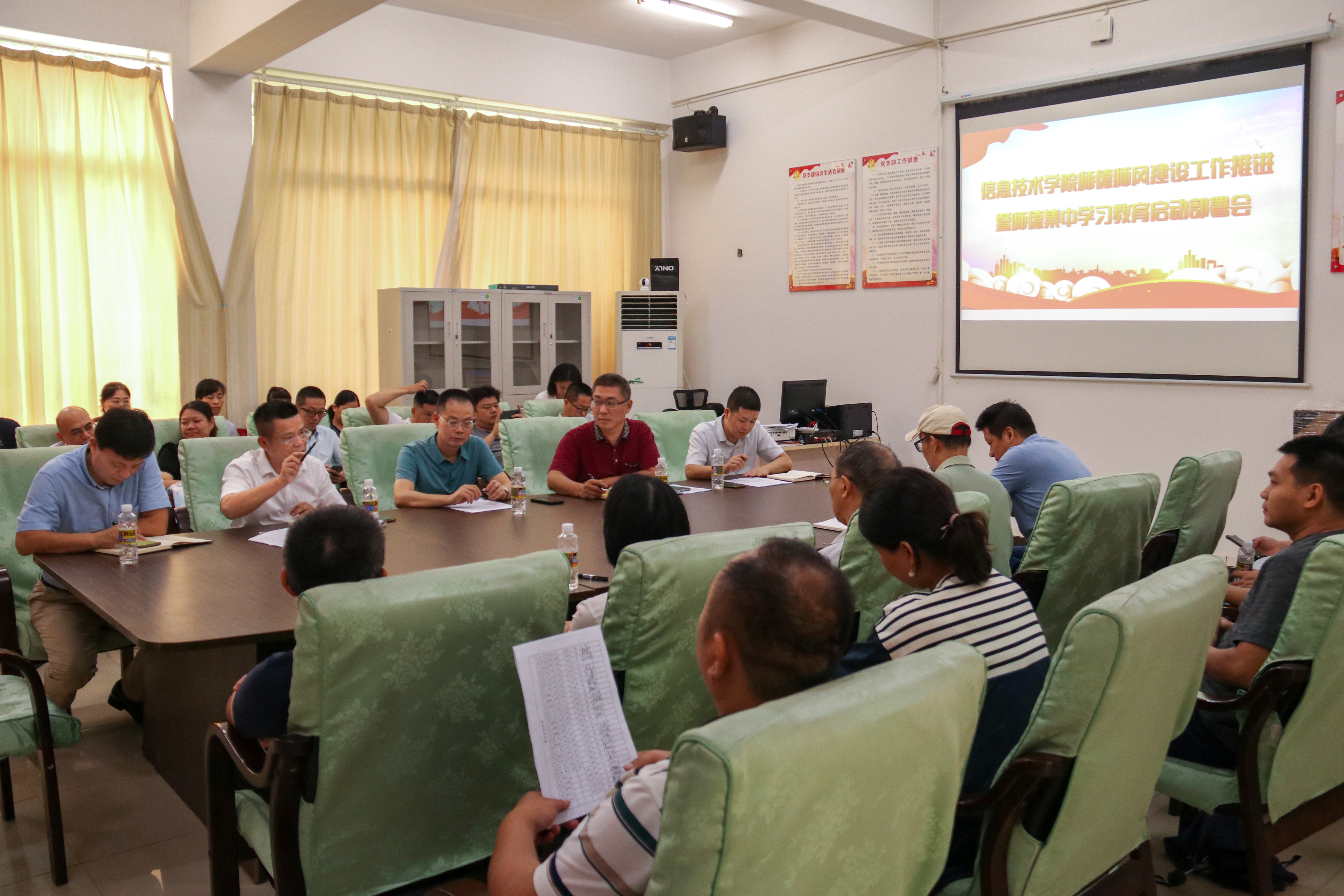 首先,符胜解读了《海南经贸职业技术学院开展师德集中学习教育工作方案》;带领教职工围绕《教师法》、《高等学校教师职业道德规范》和《高校教师师德禁行行为“红七条”》进行了学习。