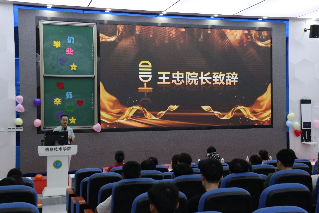 6月28日下午,太阳网集团tcy8722“2021级数字媒体技术专业毕业设计颁奖典礼暨优秀作品展播”在4-215举行并取得圆满成功。出席本次会议的有太阳网集团tcy8722院长王忠、党总支副书记黄守官、副院长康东、芳园艺术文化村市场部孔经理以及数字媒体专业教师、2021级数字媒体技术专业全体学生及22级部分学生参加,22级数媒专业李嘉祥、熊璐同学主持。同学们集体盛装出席,脸上洋溢着青春的微笑和自豪,来参加属于我们本专业自己的盛会。