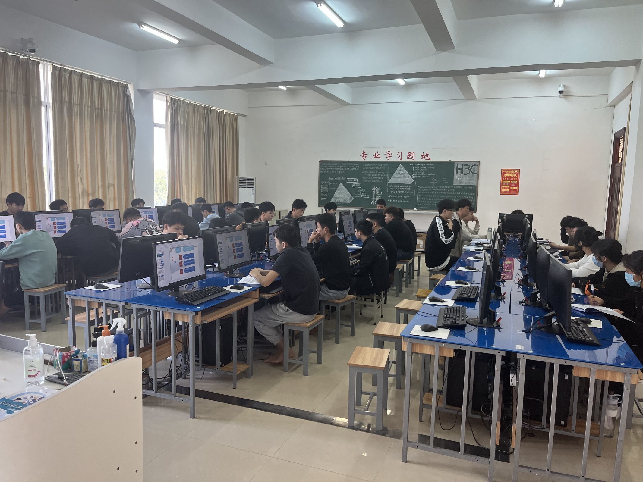 教室内,同学们聚精会神;