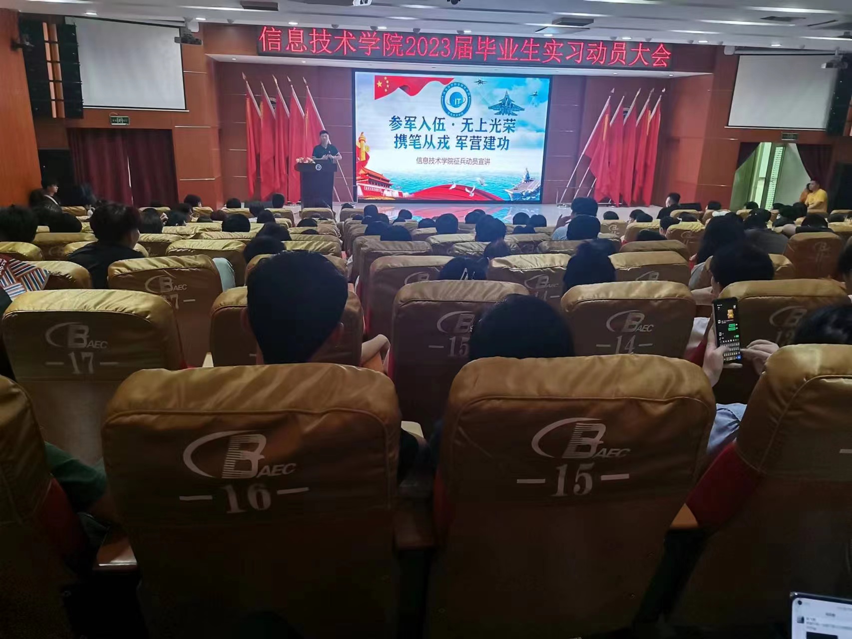 本次宣讲活动极大调动了我院学生们应征入伍的积极性,进一步强化了信息学子的家国情怀,激励同学们刻苦学习,报效家国。信息学子纷纷表示,将会积极响应国家号召、踊跃报名参军,投身部队,在军营建功立业,谱写青春华章!