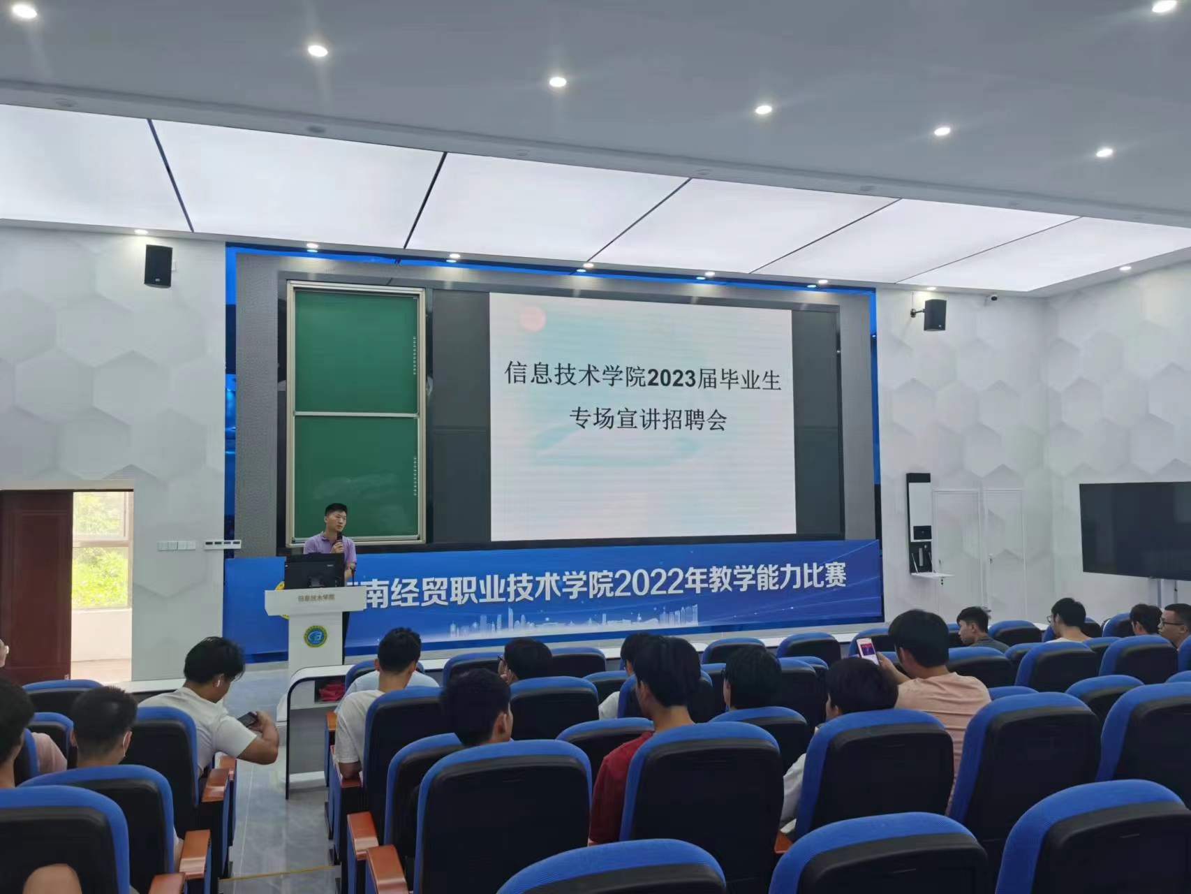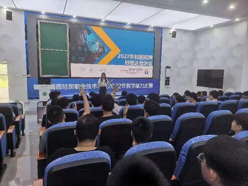 2022年6月13日,为做好我院2023届毕业生就业工作,积极为用人单位输送应用型人才,海南好思达网络科技有限公司为2023届毕业生就职业发展前景和就业岗位情况进行指导暨宣讲招聘。我院2023届计算机网络技术专业近200名同学参加。会议由梁其钰老师主持,并取得圆满成功。