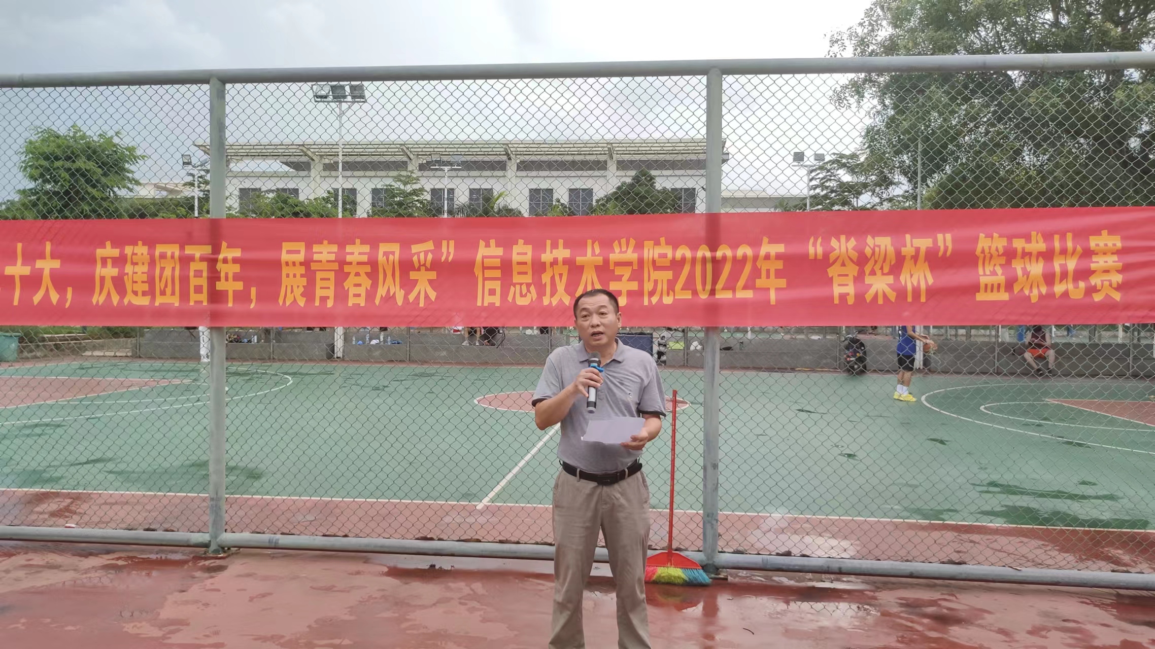 开幕式上,孙金对为组织本次比赛活动付出辛勤劳动的老师和同学,对积极参加比赛的同学和裁判表示衷心的感谢。并指出,篮球运动是展示青春活力的运动,是展示团队精神的运动,是体能加智力的运动,是竞技加拼搏,比赛加友谊,激情加汗水的运动。他希望同学们要发扬体育精神,赛出成绩,赛出风格,重要的是赛出友谊,赛出健康。同时,要注意保护自己,避免受伤。要营造一个“文明、热烈、平安、和谐”的比赛环境。