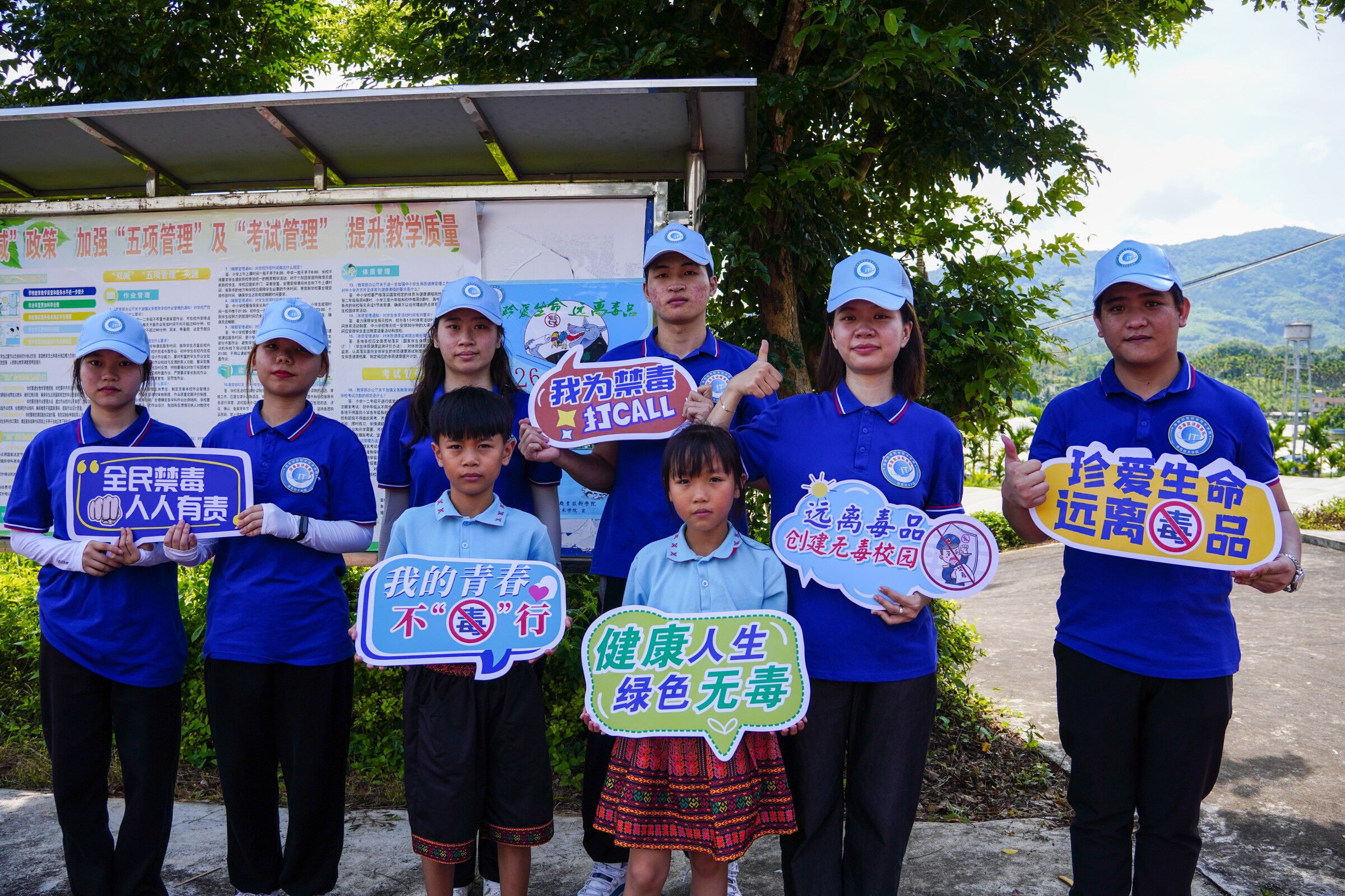 珍爱生命,远离毒品。为了进一步加强校园禁毒宣传,提高同学们的禁毒意识,创建无毒校园,营造良好的校园环境,2022年6月30日,海南经贸职业技术学院太阳网集团tcy8722禁毒宣讲服务队在辅导员王智娴、唐图的带领下,前往五指山南圣中心学校南圣教学点开展禁毒宣传教育活动。