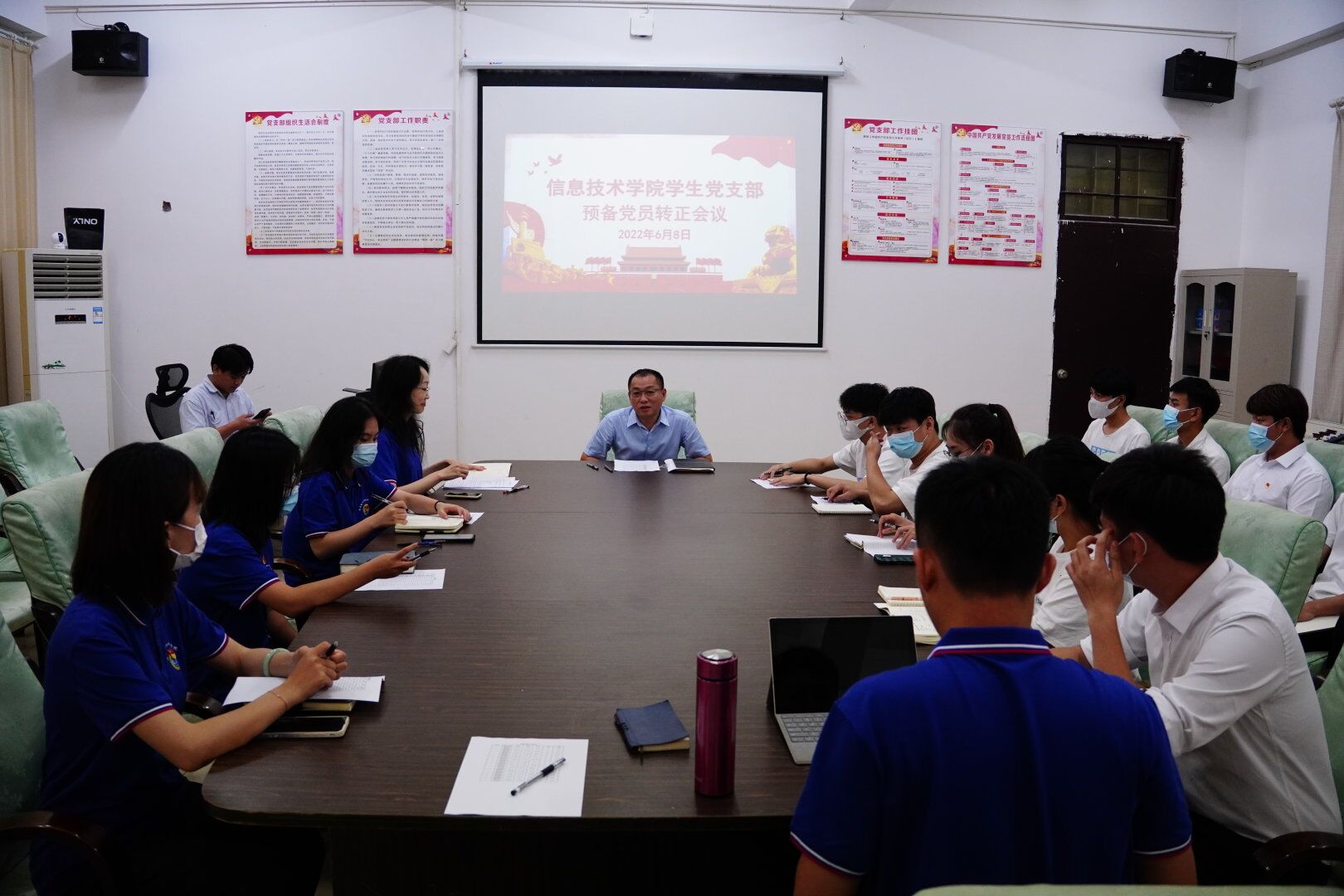 2022年6月8日下午,(青年媒体中心 吴振慧讯)太阳网集团tcy8722学生党支部召开预备党员转正会议。党总支书记孙金列席、学生党支部书记代晓明、学生支部正式党员及预备党员参加会议。代晓明主持会议。