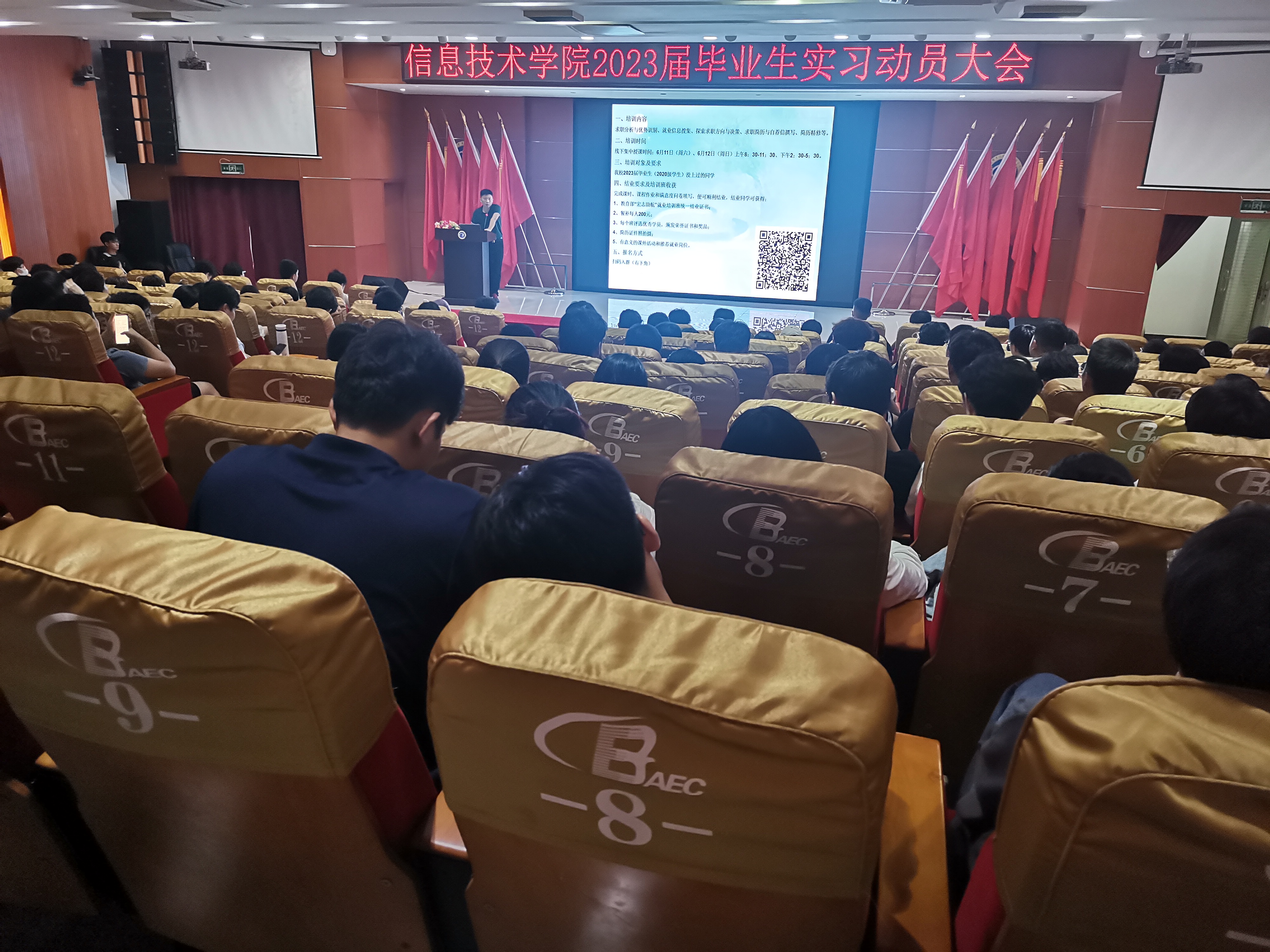 为进一步完善毕业实习工作,引导学生做好顶岗实习前的各项准备,推进实习工作顺利进行。6月8日,太阳网集团tcy8722召开2023届毕业生实习动员大会,学工办主任梁其钰老师,辅导员代晓明老师,王智娴老师以及全体2023届毕业生到场参加。