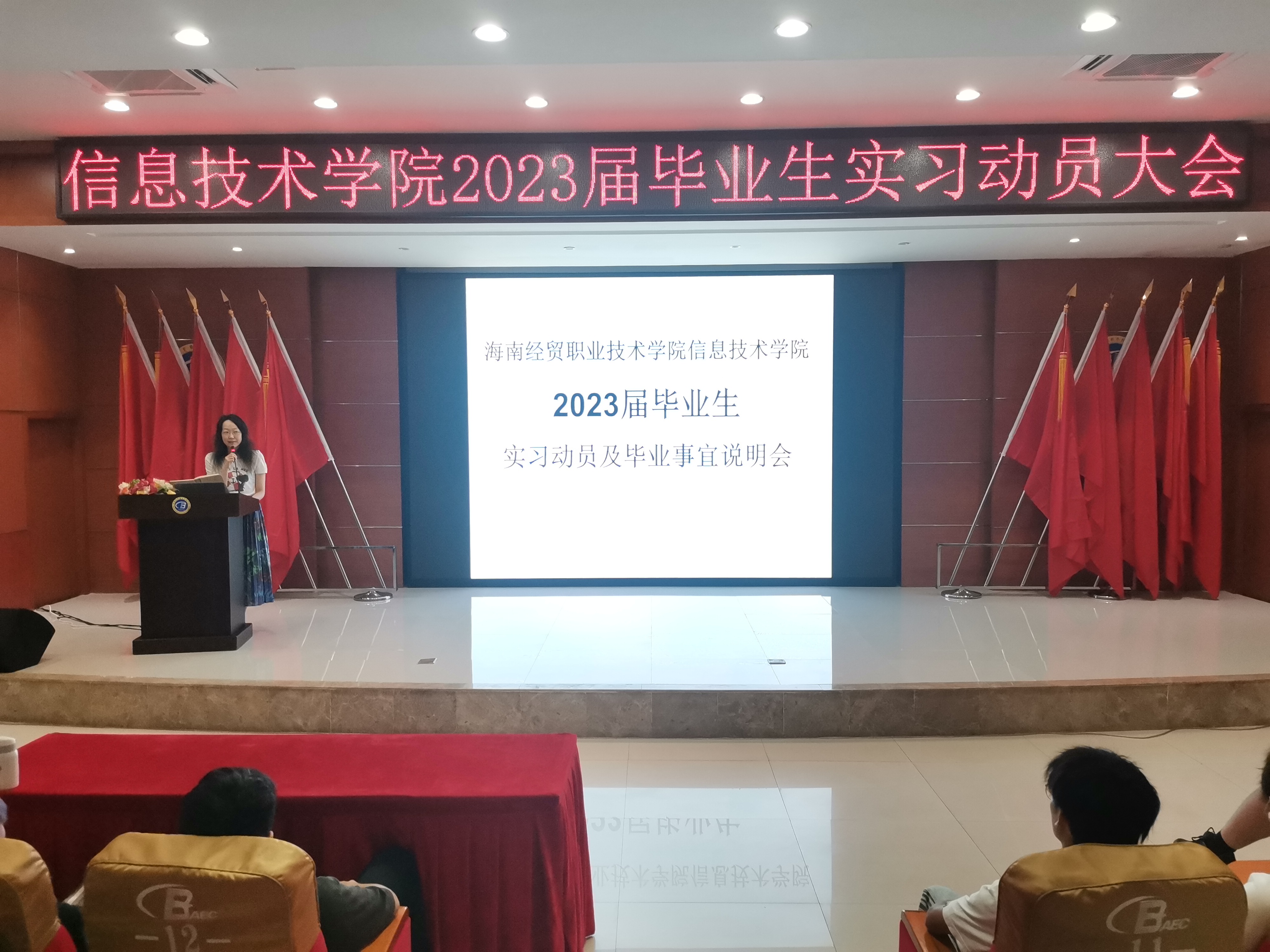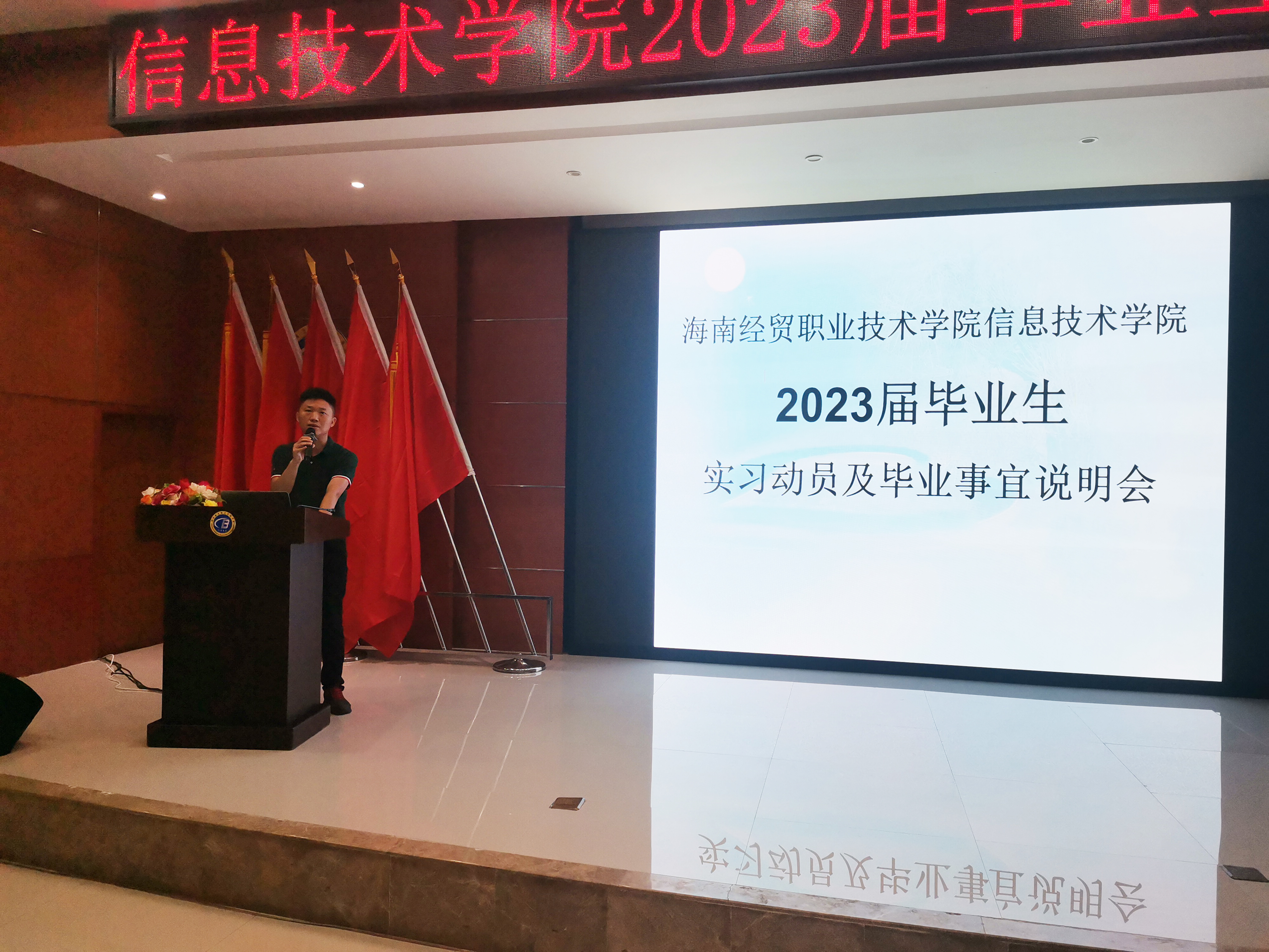 紧接着代晓明老师围绕着2023届毕业生具体工作事项进行详细的安排介绍,强调学生实习期间一定要注意人身财产安全,提醒大家认真进行实习工作的同时不忘及时完成学校各项毕业待办事项,为顺利毕业做好充分的准备!
