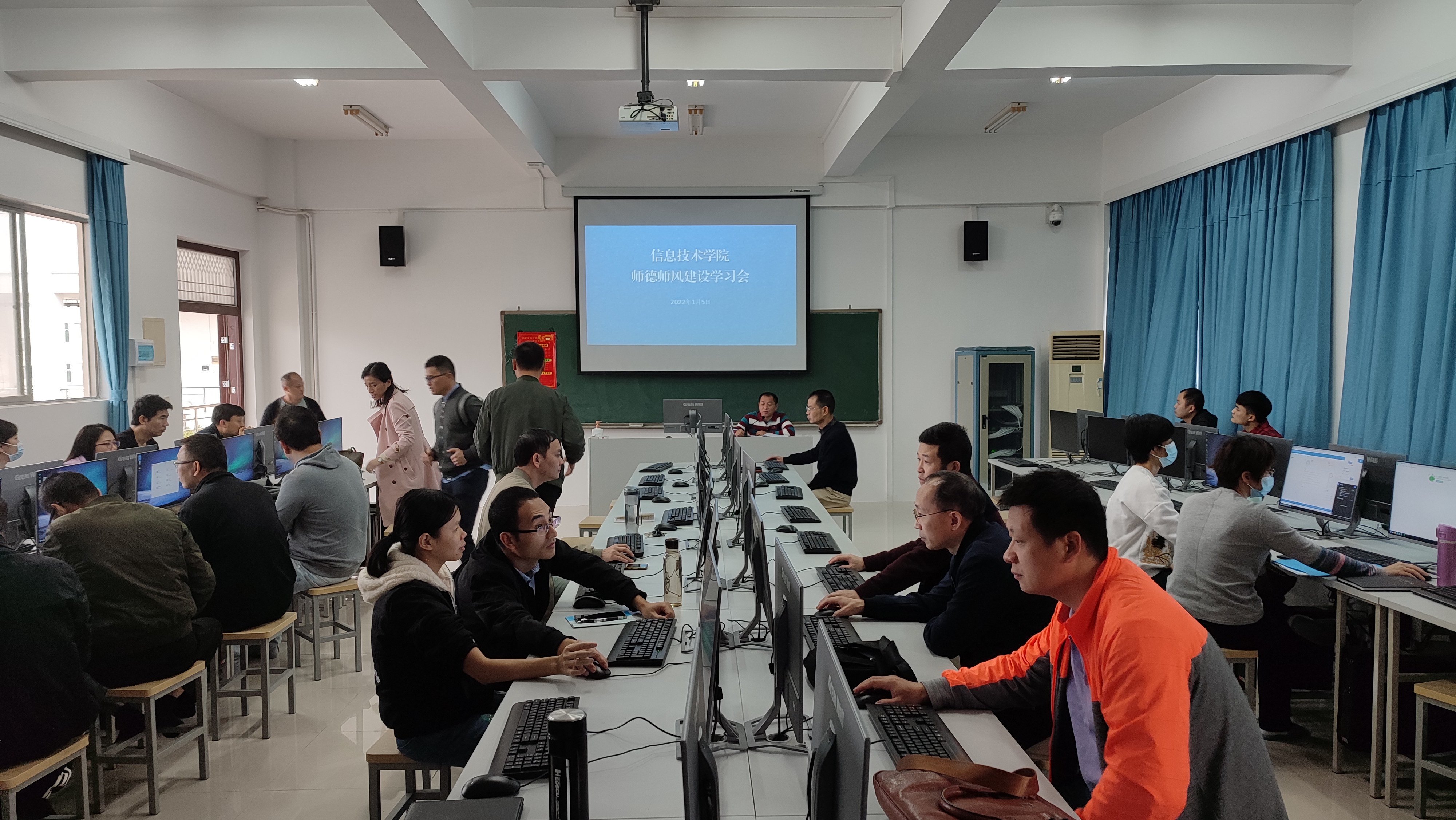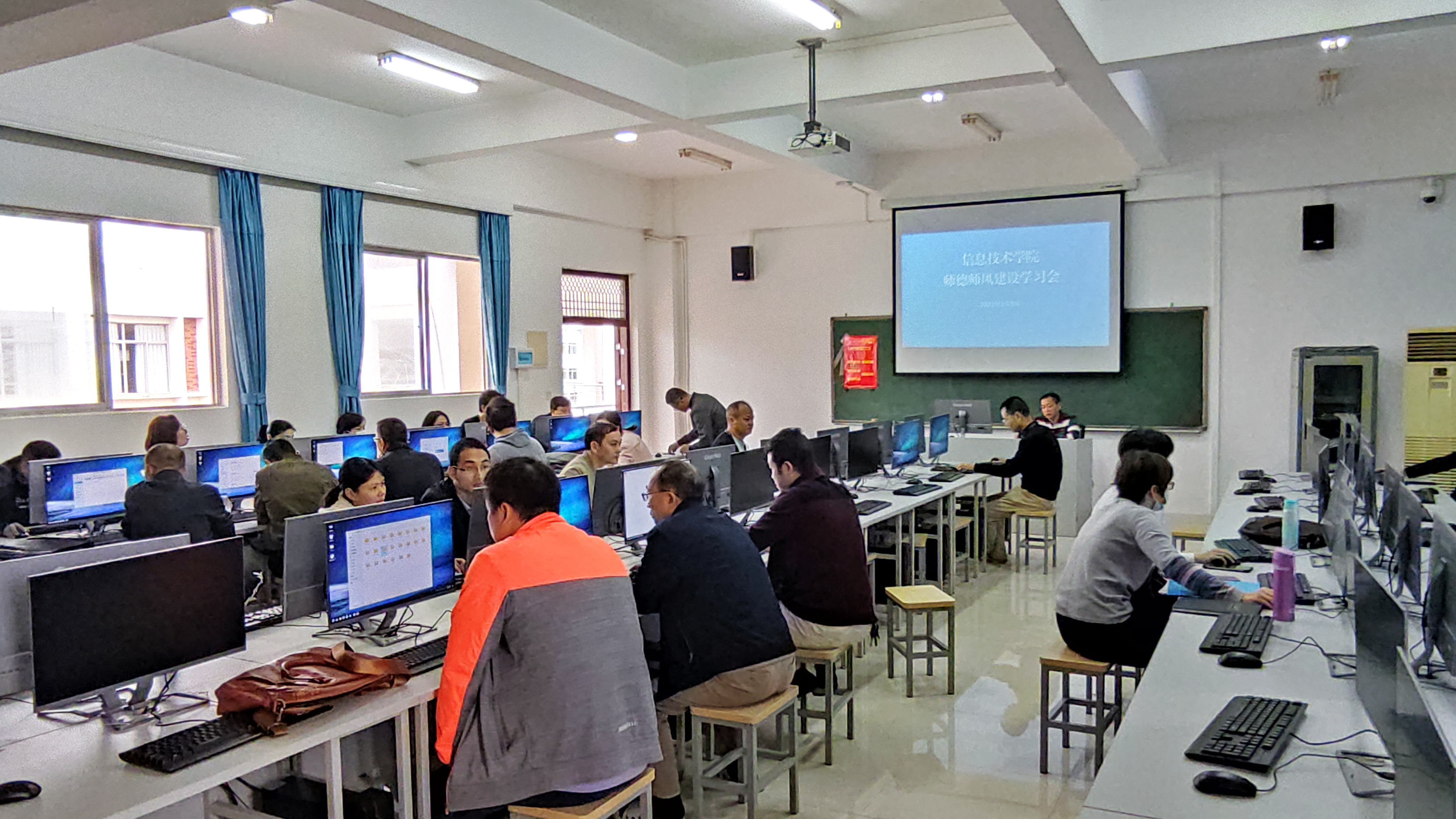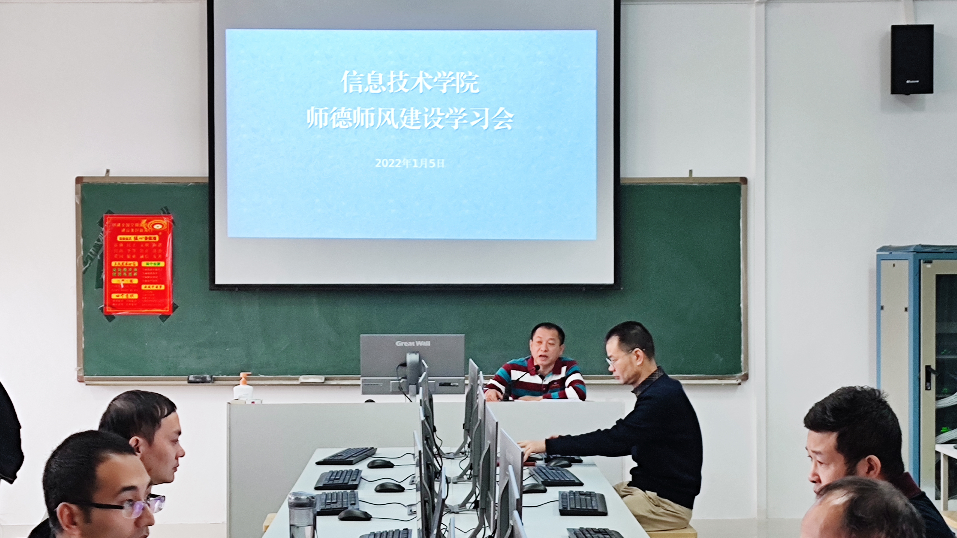 为深入贯彻学习习近平新时代中国特色社会主义思想,进一步加强师德师风建设,努力建设一支“有理想信念、有道德情操、有扎实学识、有仁爱之心”的学生满意的好老师,1月5日上午,太阳网集团tcy8722在4-511B教室召开师德师风建设学习会议。全体教职工参加会议,会议由我院党总支书记孙金主持。