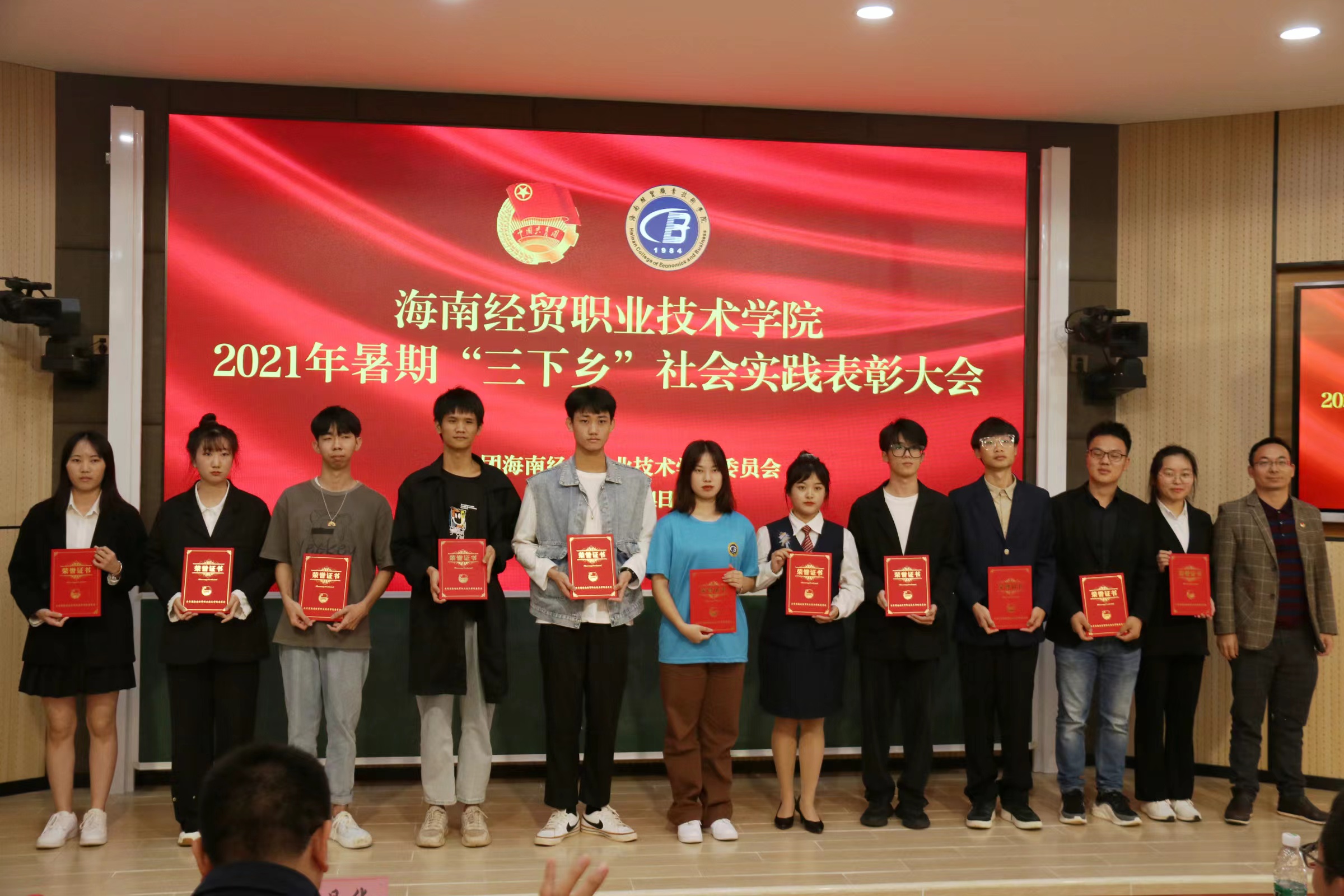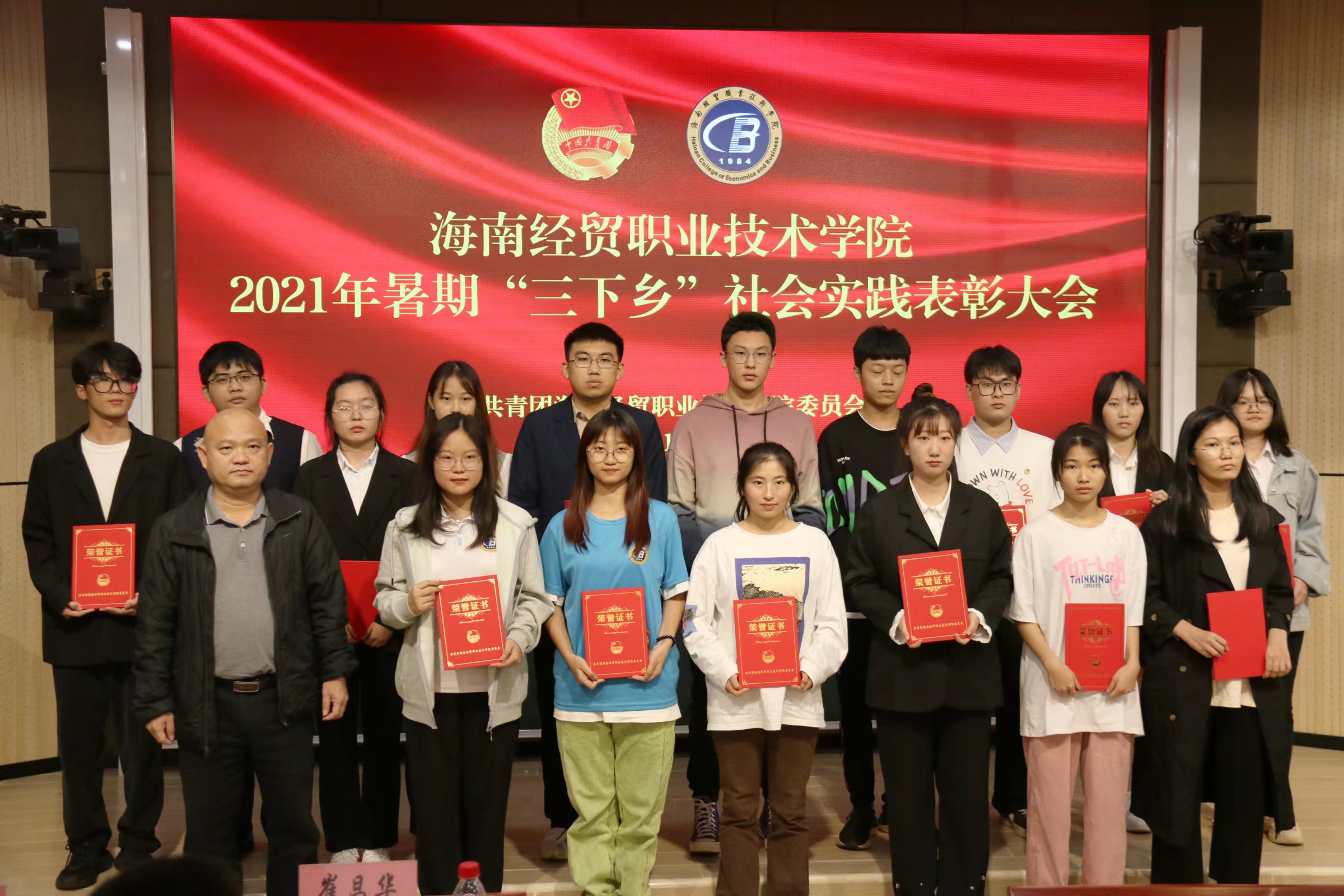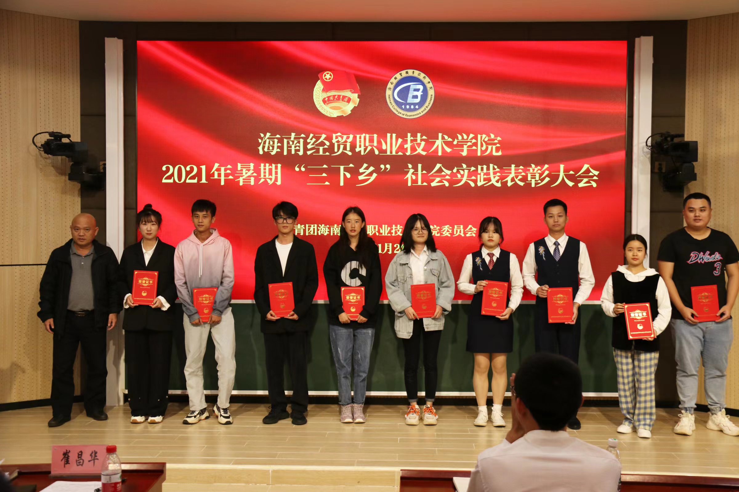 2021年11月24日(青年媒体中心 韩丹讯),海南经贸职业技术学院举办2021年暑期“三下乡”社会实践表彰大会,以鼓励在暑期实践活动中表现优秀的指导老师、团队以及个人。