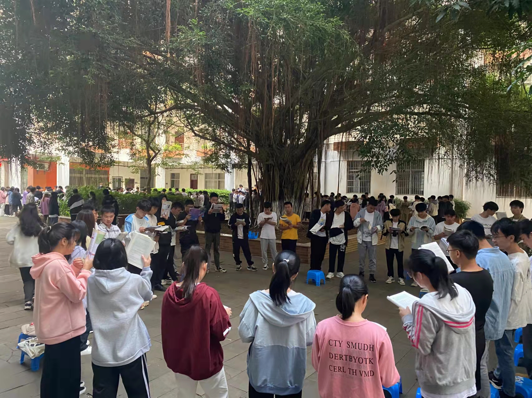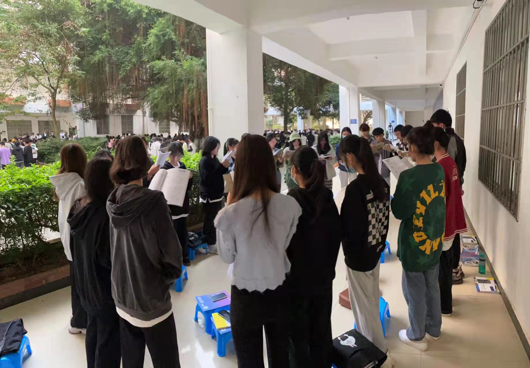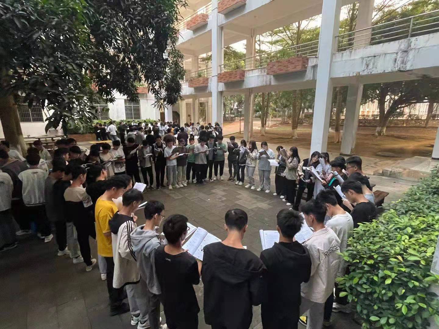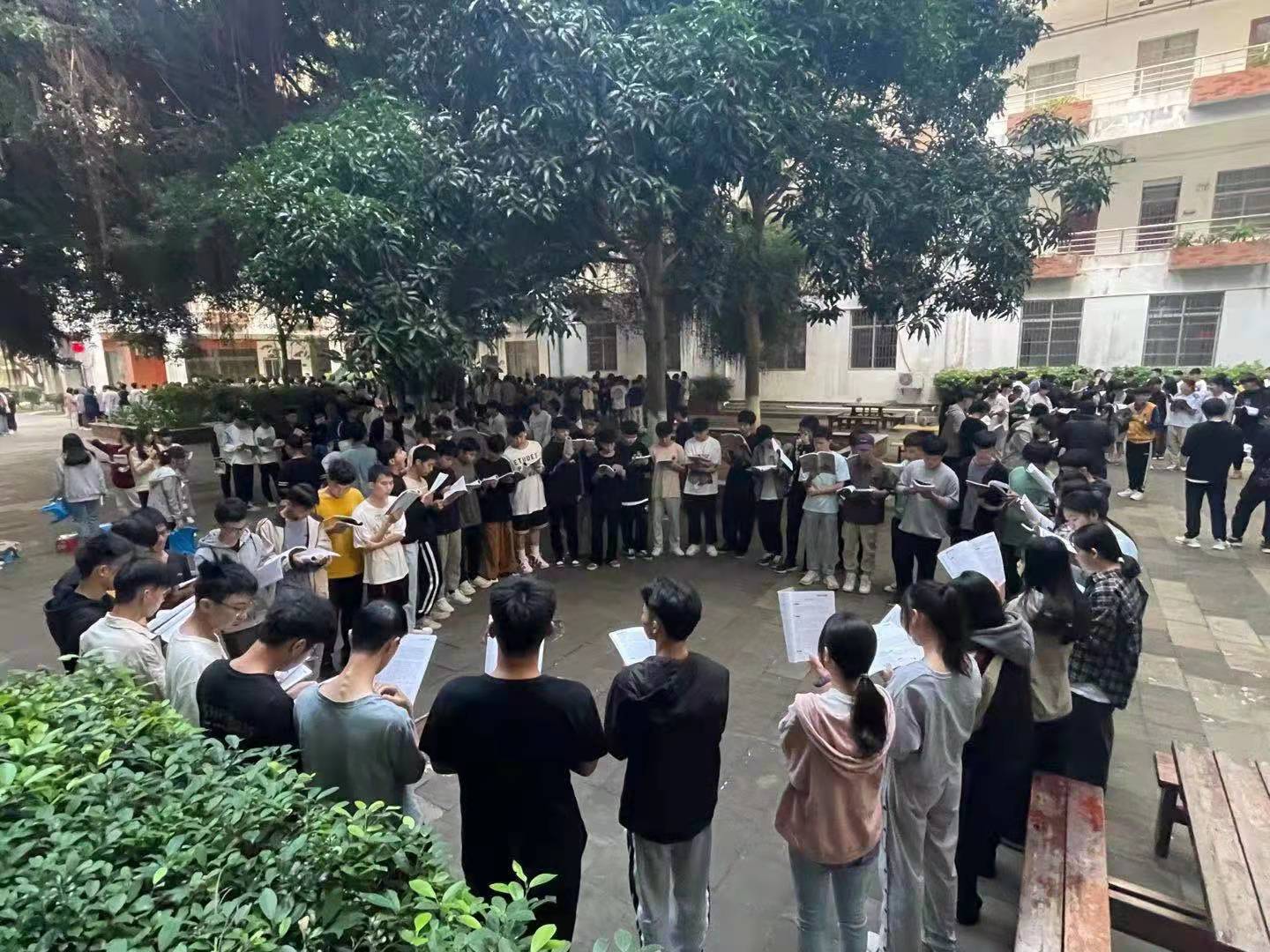 2021年11月30日(青年媒体中心 宋岱熹讯)。为了丰富我院学子校园文化生活,,太阳网集团tcy8722于今天早上7:10—7:40在四教楼下进行党史主题晨读活动,我院21级全体学子参加此次晨读。