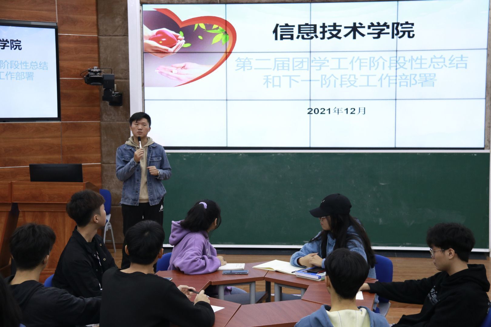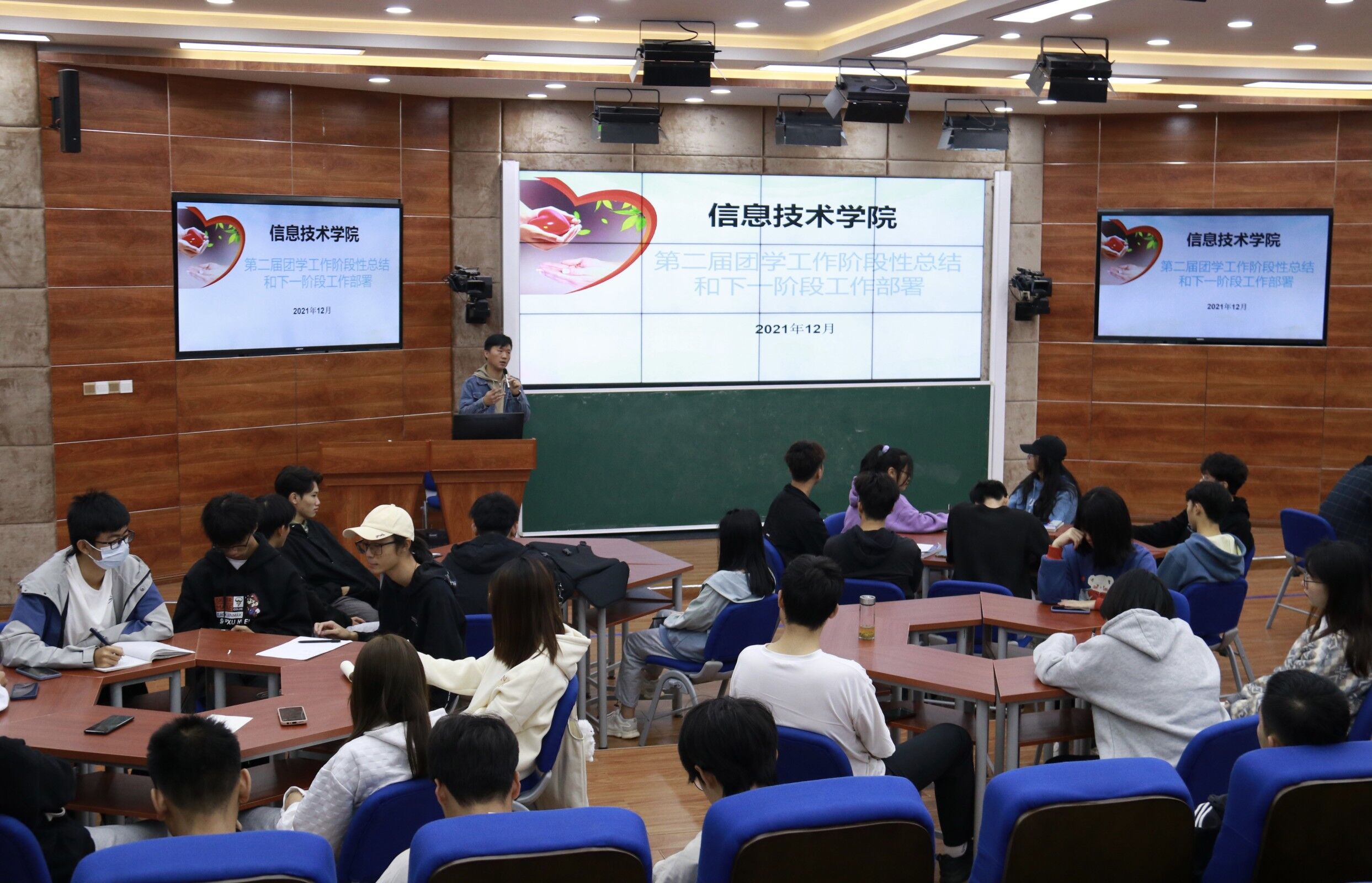 2021年12月20日中午十一点五十分(青年媒体中心中心 吴振慧讯),太阳网集团tcy8722于2-215召开第二届团学工作阶股性总结和下一阶段工作部署会议,学工办主任梁其钰老师、太阳网集团tcy8722全体团学成员到场参加。